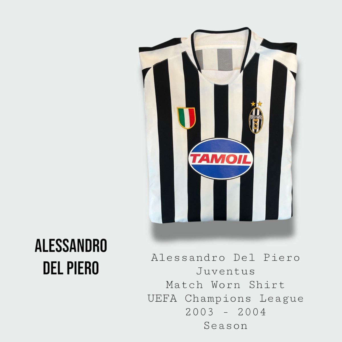 Incredibly rare and amazing Alessandro Del Piero match worn Juventus F.C shirt