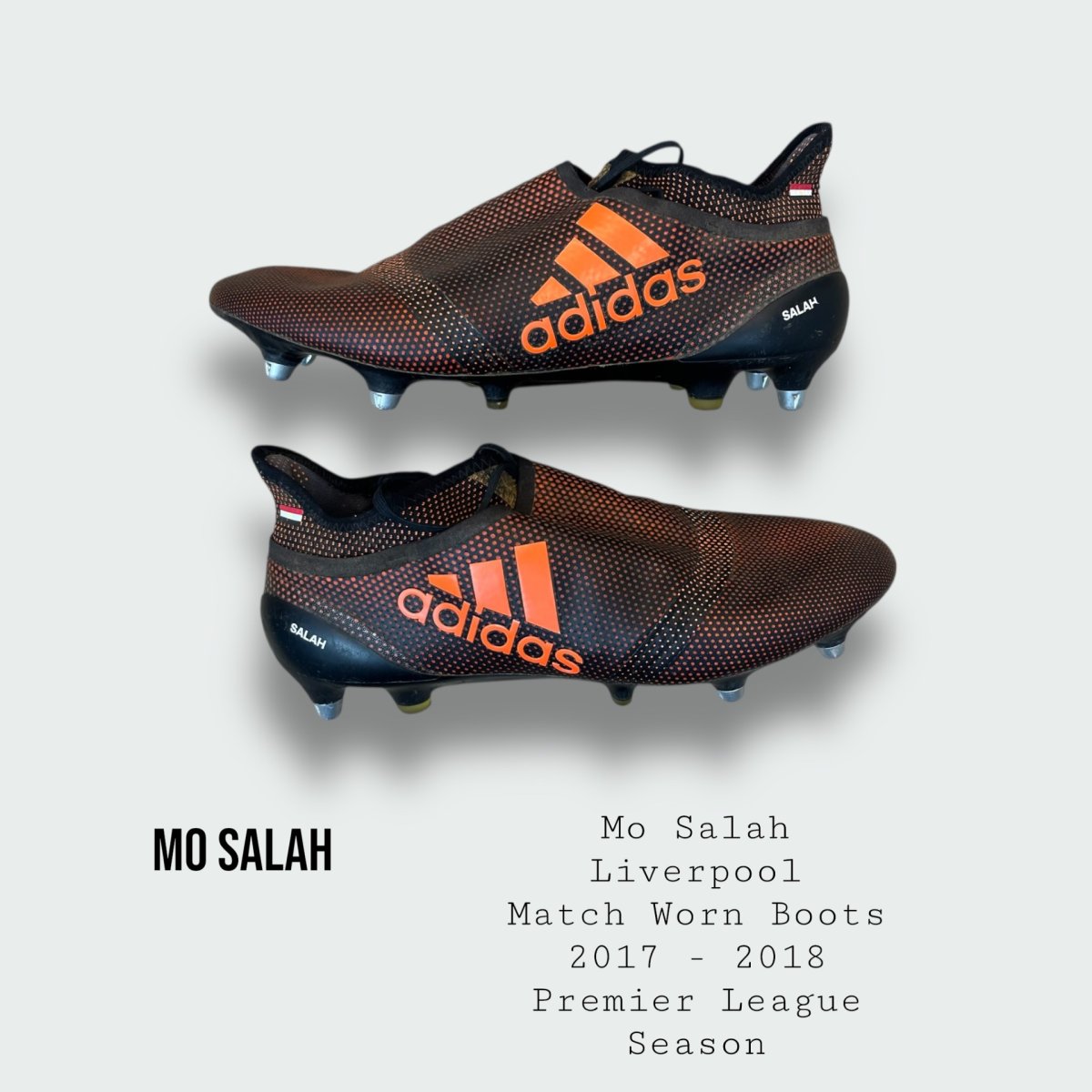 Fantastic and incredibly rare worn boots from the Liverpool star and club legend , one of the greatest players in Premier League history and from Salah’s incredible record breaking debut season