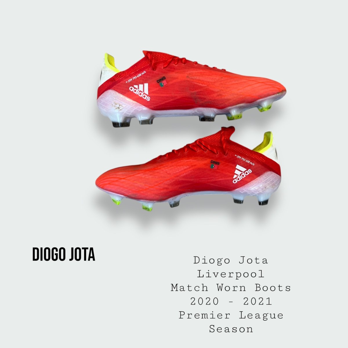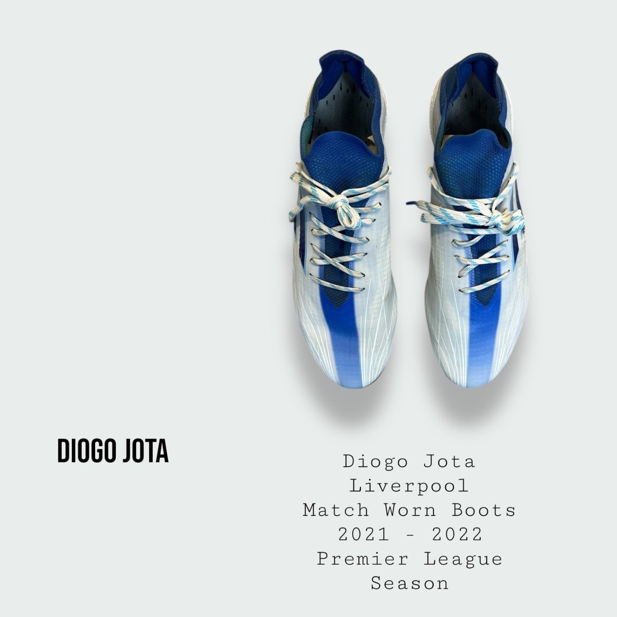 Boots worn by the late great Diogo Jota during the 2024 – 2025 Premier League title winning season and tragically his last ever season at the club