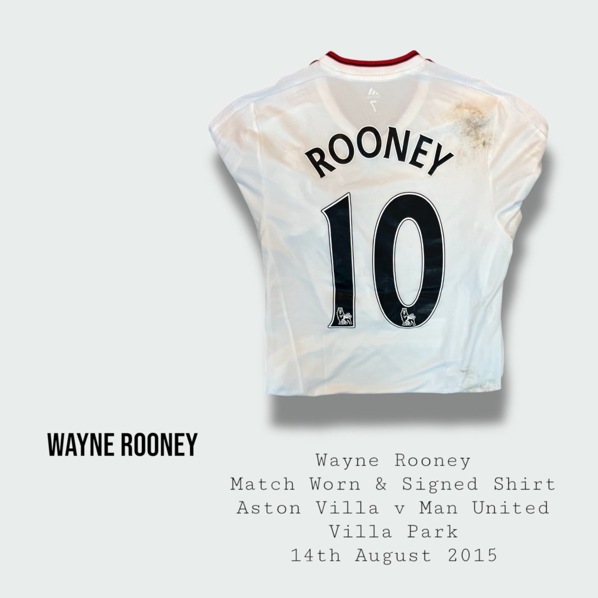 Shirt has been additionally hand signed on the back by Rooney