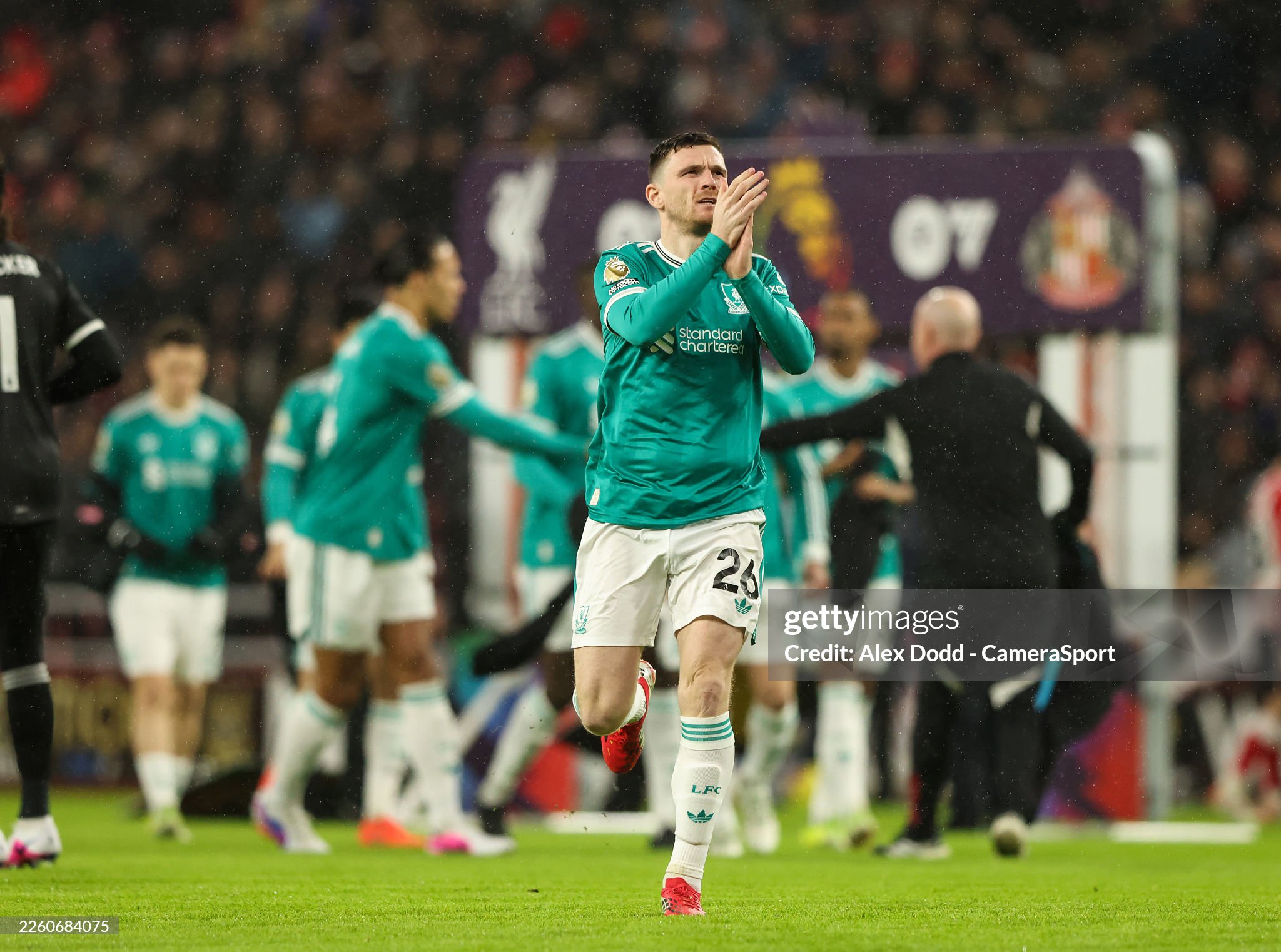 Robertson joined Liverpool in July 2017 for an undisclosed fee, believed to be an initial £8 million. His honours with Liverpool include the 2018–19 UEFA Champions League, the 2019–20 Premier League, the 2019 UEFA Super Cup, the 2019 FIFA Club World Cup and a 2021–22 season EFL Cup and FA Cup domestic double. The 2022 FA Community Shield win meant he had won once each at that stage, the complete set of all seven first tier trophies available to Liverpool. He has since won a second EFL Cup (2024) and Premier League title (2025) with Liverpool.