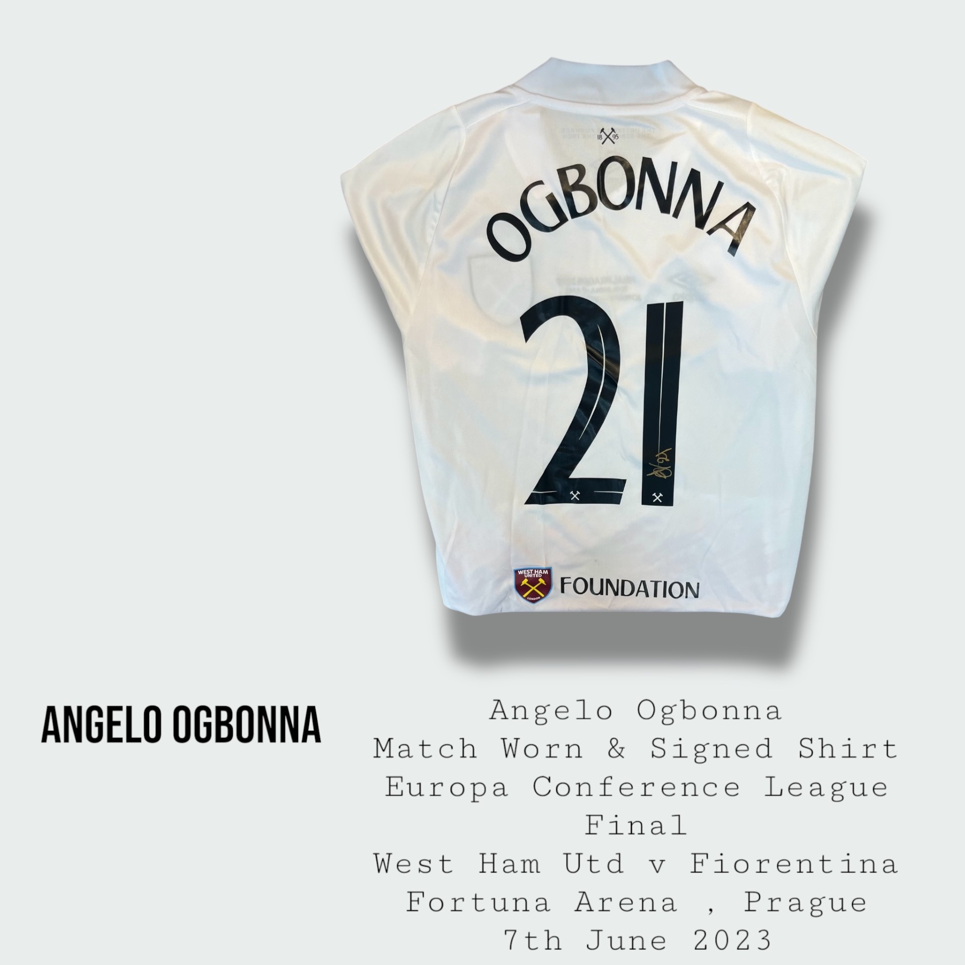 Angelo Ogbonna Match Worn & Signed West Ham United Europa Conference League Final Shirt 2023