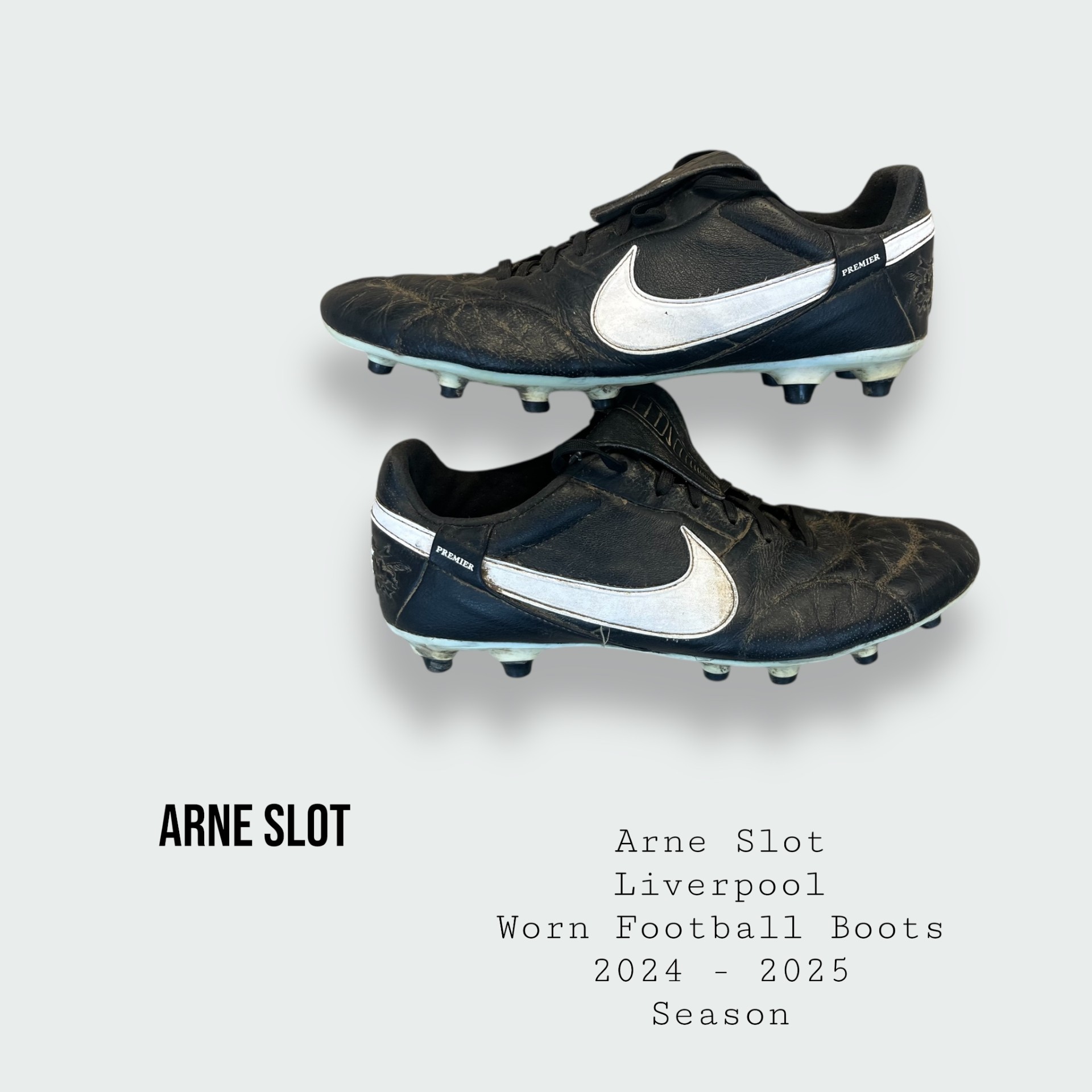 Boots worn by Slot for training sessions with Liverpool Football Club during the 2024 - 2025 Premier League title winning season