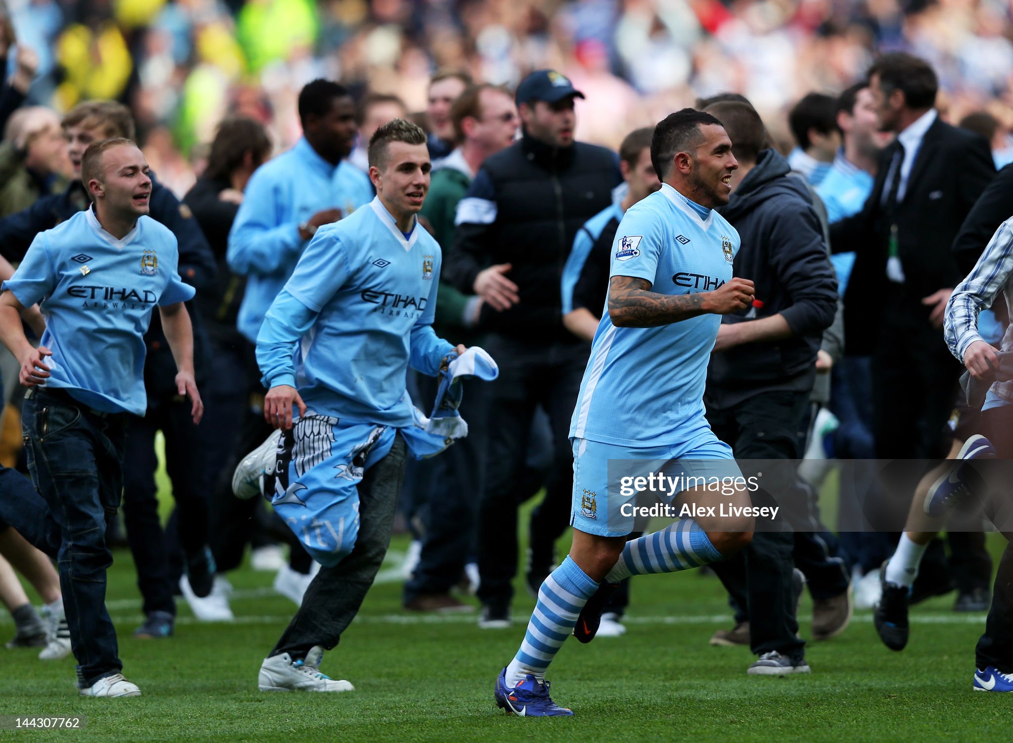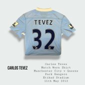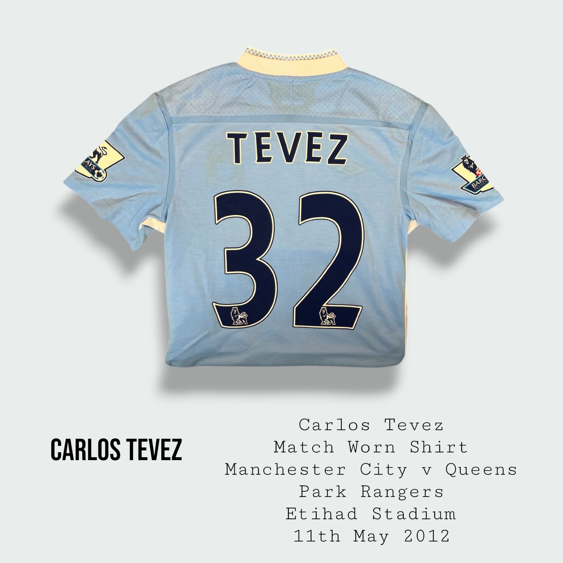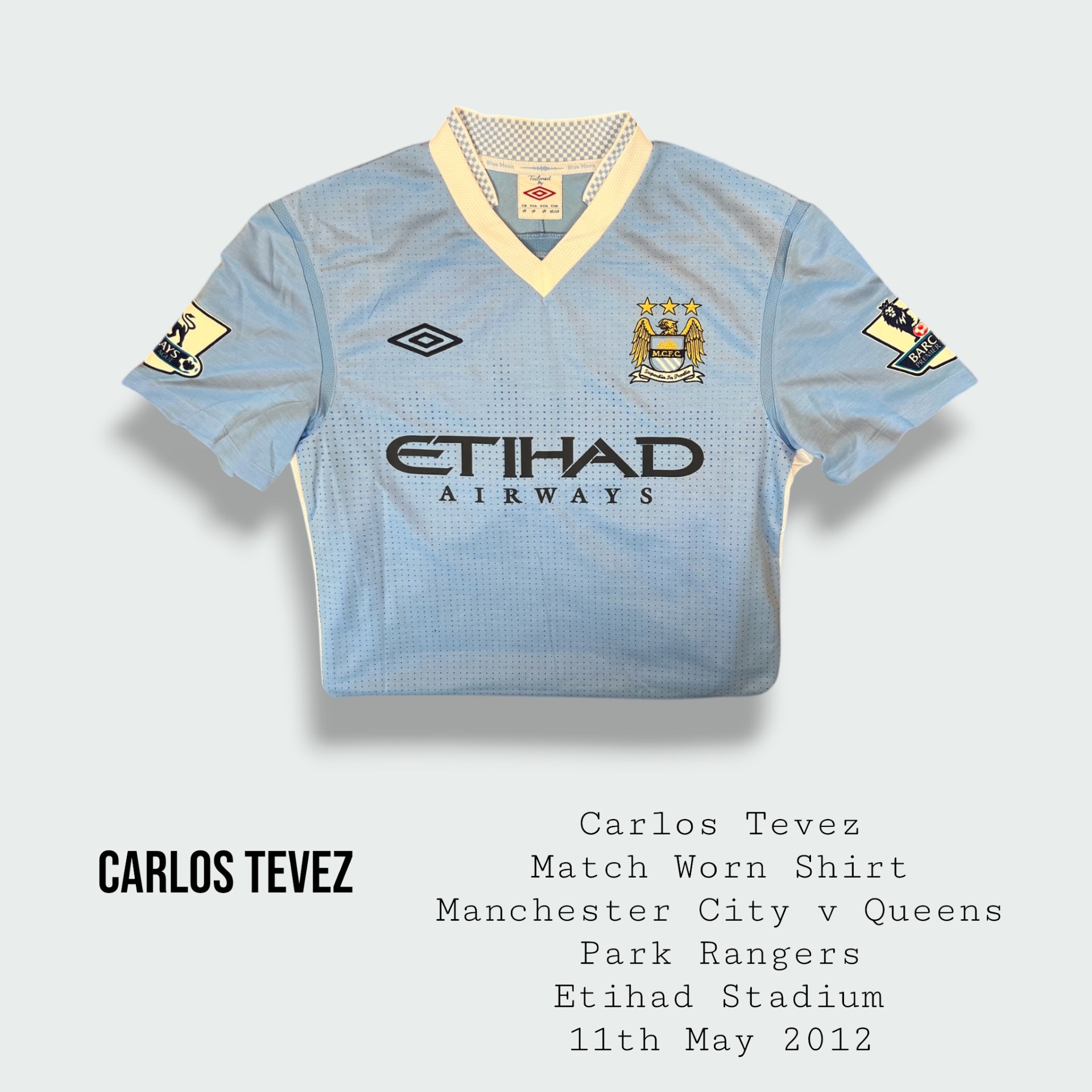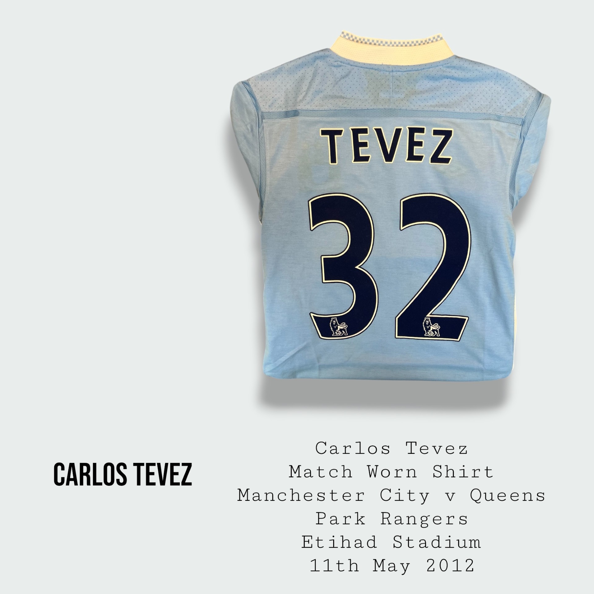 Shirt worn by Tevez for Manchester City during the clubs historic end of season final match at the Etihad Stadium v Queens Park Rangers on the 13th May 2012