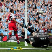 This was the match when Manchester City beat Queens Park Rangers with a last minute goal from Sergio Aguero to secure and win the clubs first Premier League title and send the Manchester City team and fans into jubilant celebrations