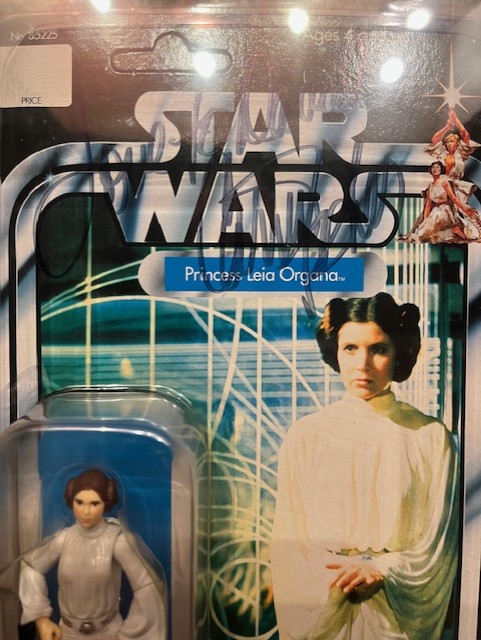 Incredibly rare Carrie Fisher hand signed Star Wars action figure