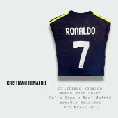 Shirt worn by Ronaldo for Real Madrid during the La Liga fixture v Celta Vigo at the Estadio Balaidos stadium on the 10th March 2013
