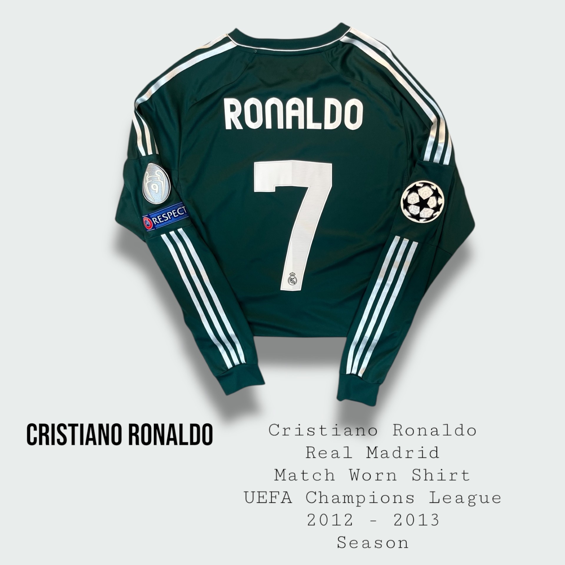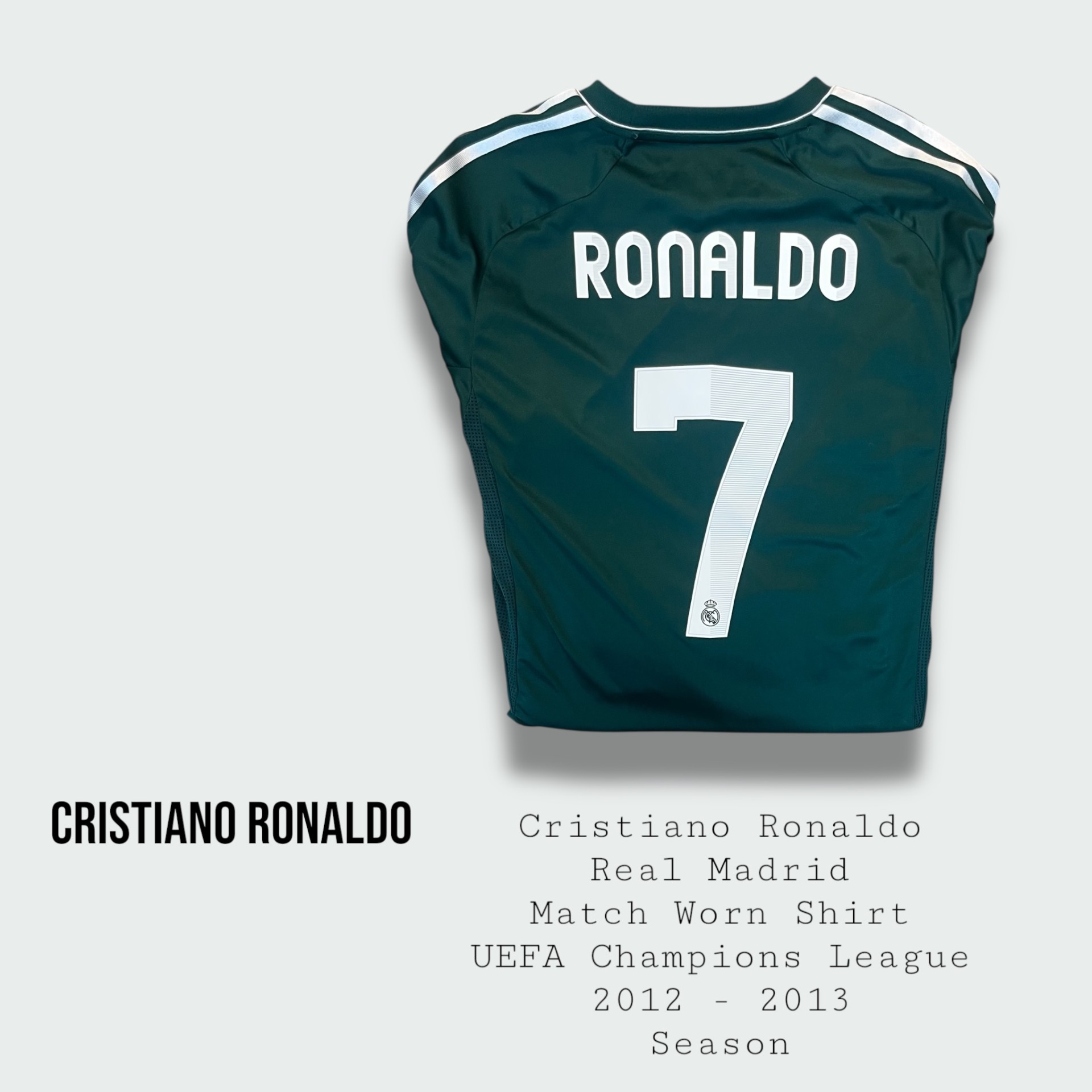 Cristiano Ronaldo Match Worn Real Madrid UEFA Champions League Shirt 2012 – 2013 Season