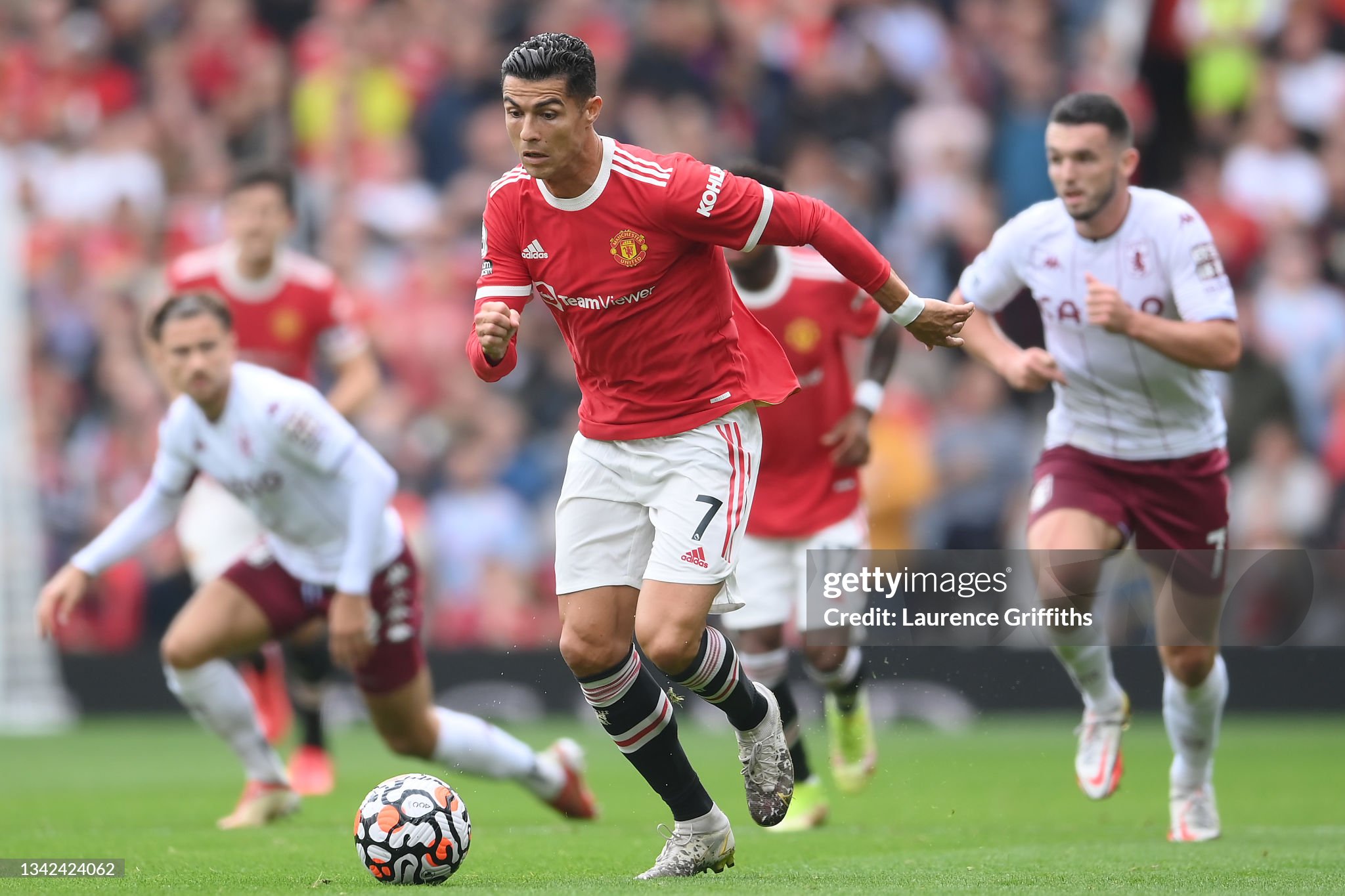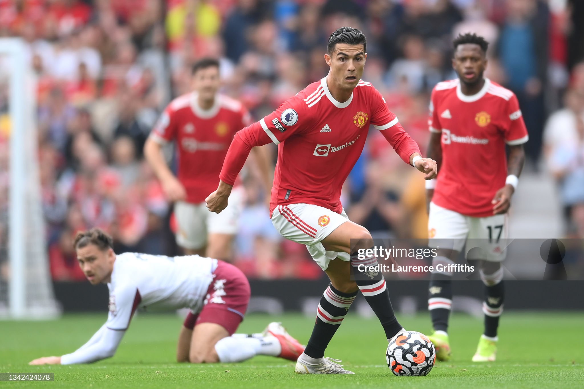 Shirt worn by Ronaldo for Manchester United during the Premier League fixture v Aston Villa at Old Trafford on the 25th September 2021