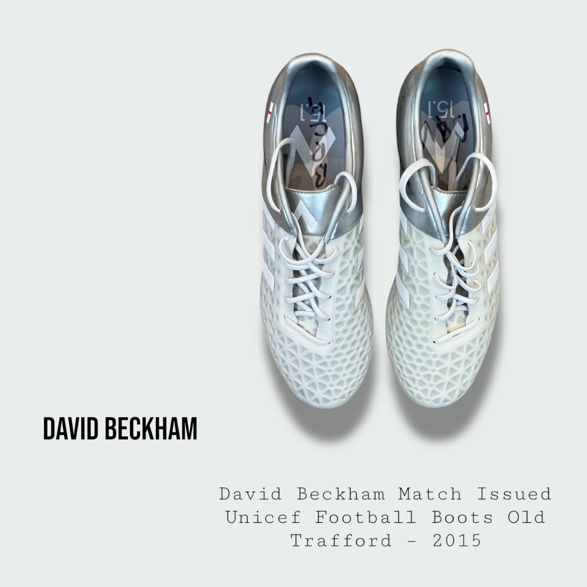 David Beckham Match Issued Unicef Football Boots Old Trafford – 2015