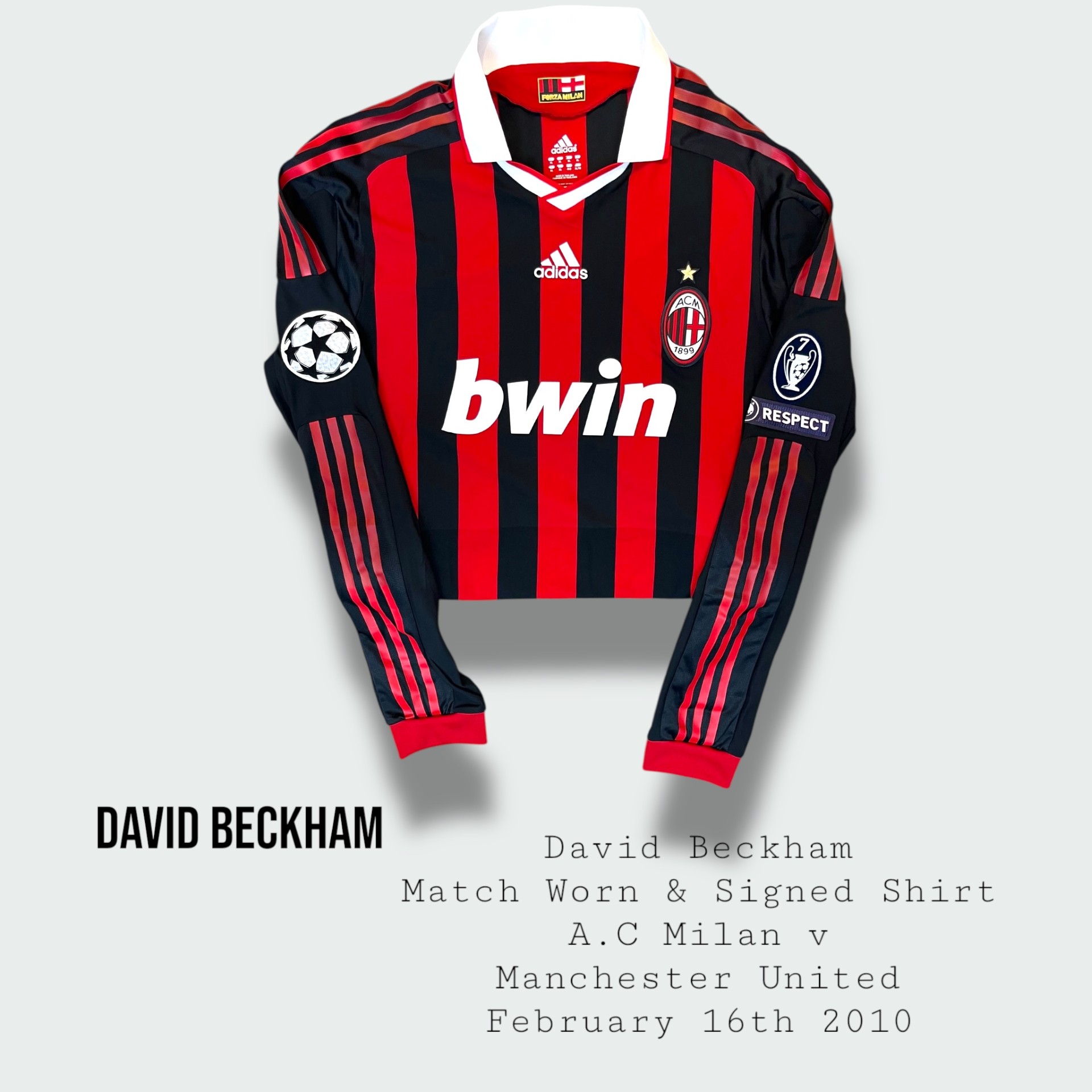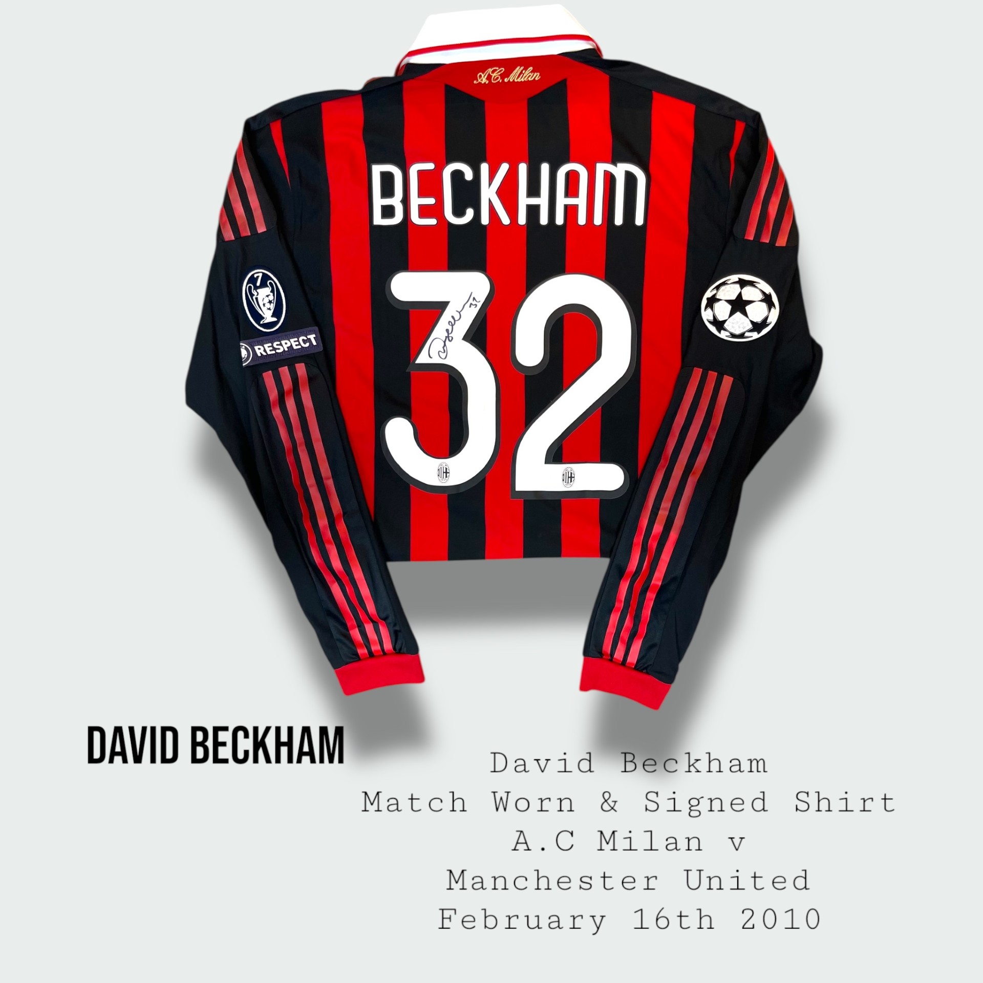 RARE DAVID BECKHAM MATCH WORN A.C MILAN SHIRT