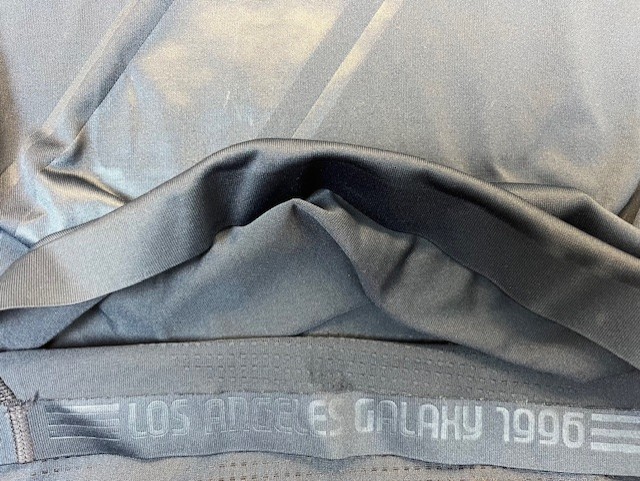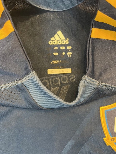 David Beckham Match Worn #23 Los Angeles Galaxy Away Shirt from the 2009 MLS Season. This shirt was a part of the squad’s original equipment and was used by David during match play. Beckham led the Galaxy to the MLS Cup Final during the 2009 season, ultimately losing to Real Salt Lake in the Final. Upon close inspection, you will come to find the following signs of use throughout this item: No significant damage is evident. No heavy markings are visible. Due to the dark color of the fabric, it is difficult to discern if there are any lighter markings. Some light fading/bleeding in the back numbers exists. Some very minor scuffs appear throughout the shirt . A portion of the inner size label has worn off. Normal age/wear for a garment likely worn for just one half of play.