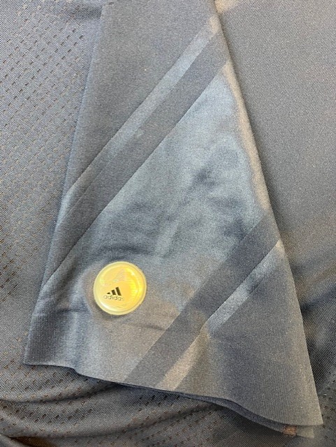 5. Adidas shoulder stripes are applied in a thin taped fabric.