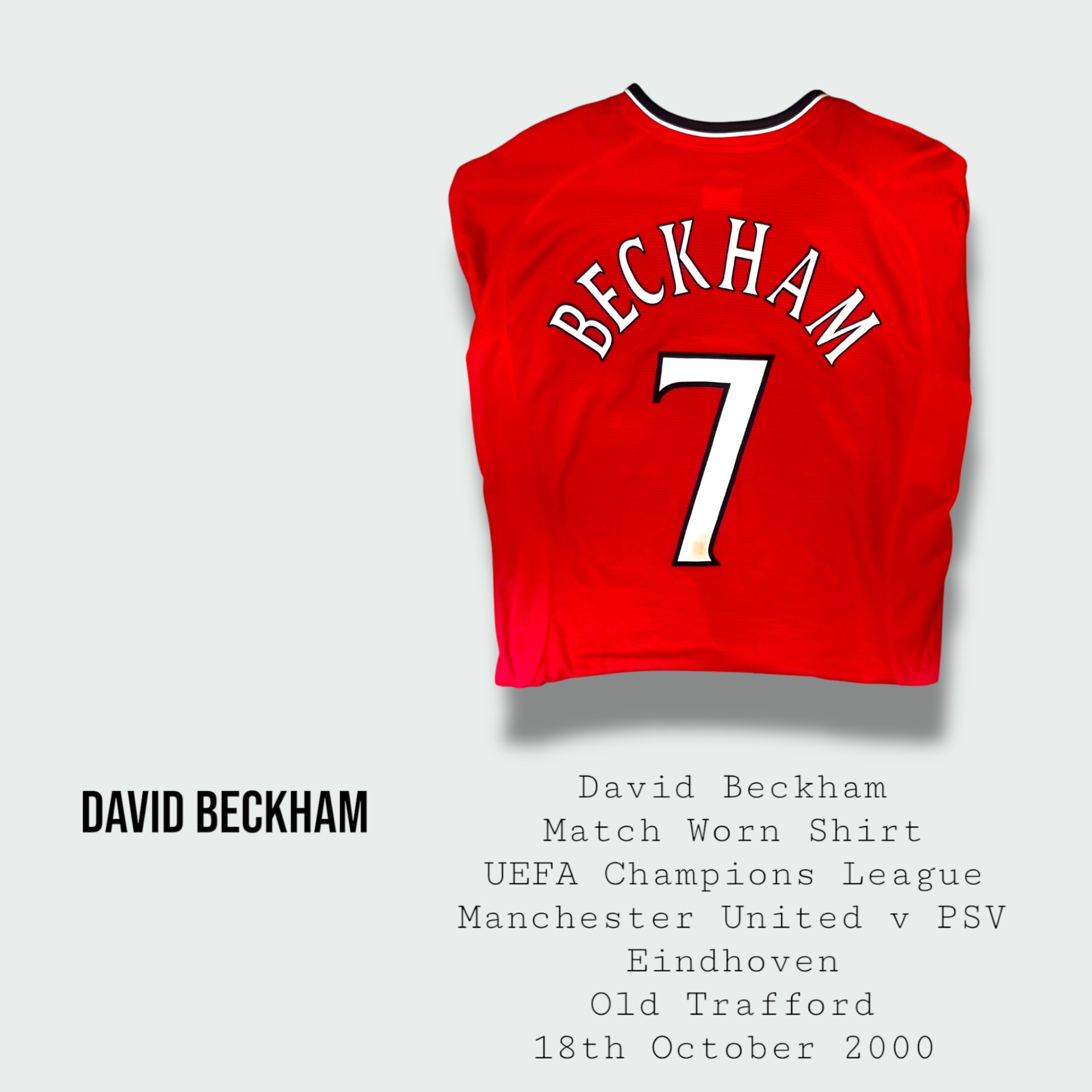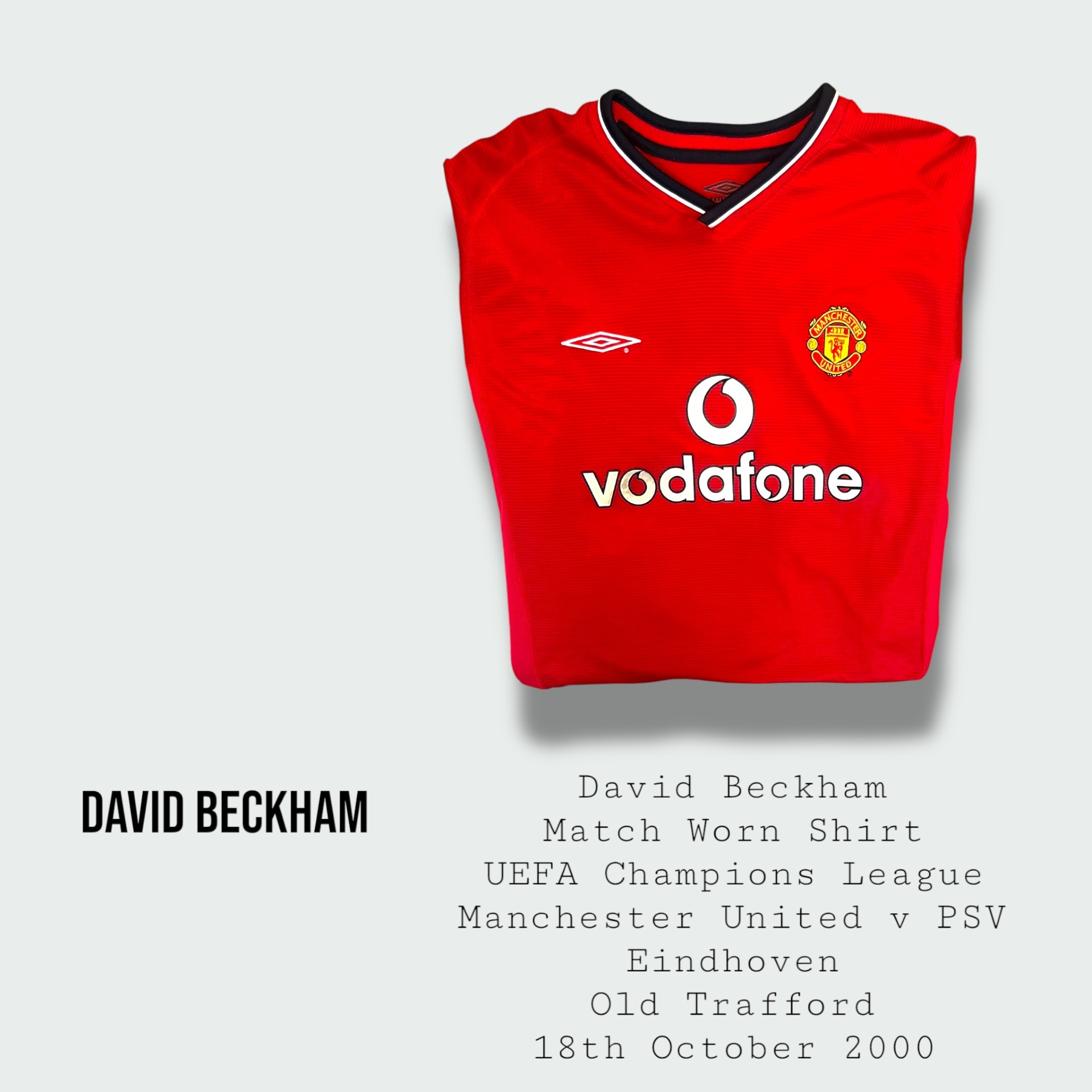 Shirt worn by Beckham for Manchester United during the UEFA Champions League fixture v PSV Eindhoven at Old Trafford on the 18th October 2000