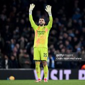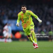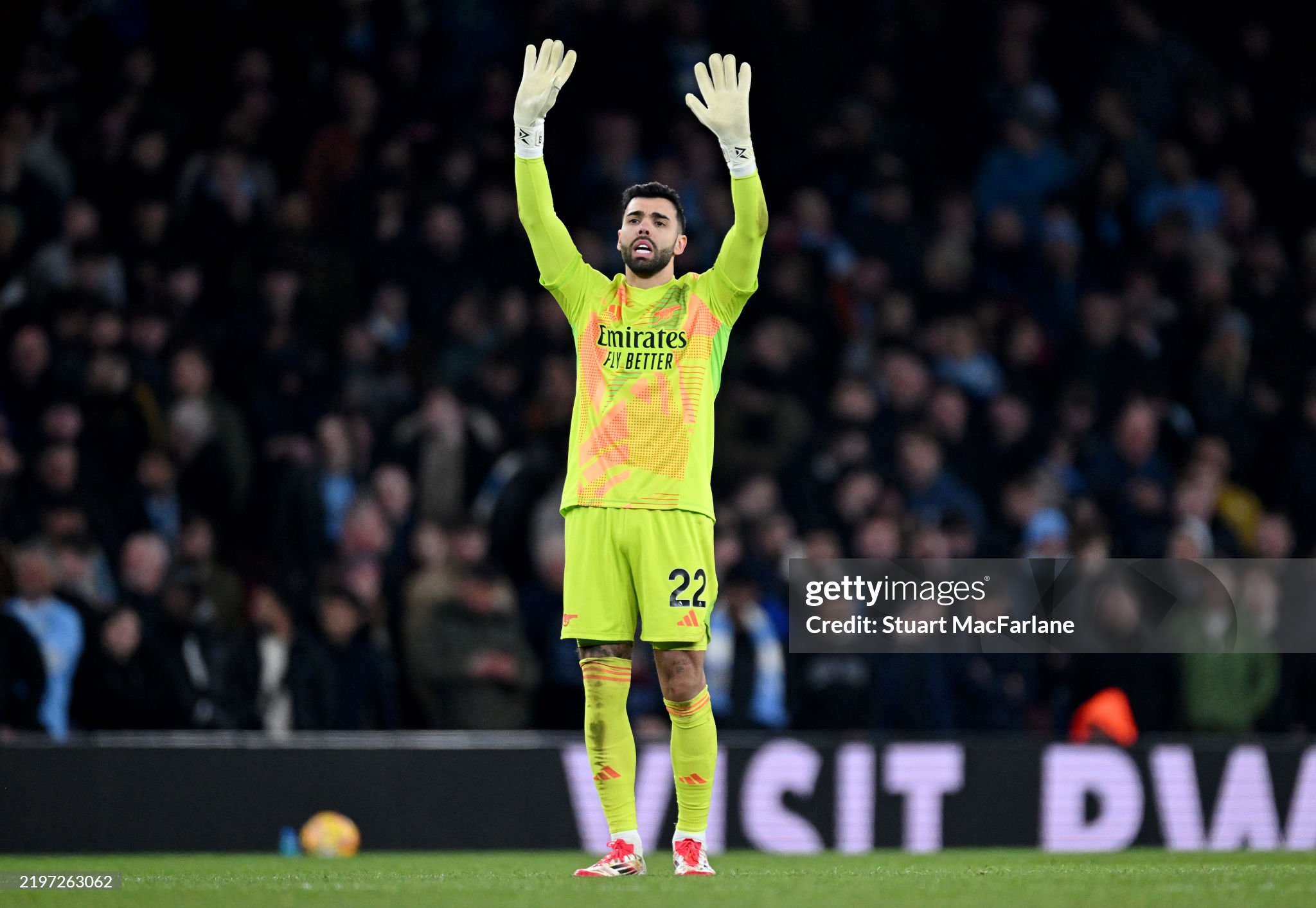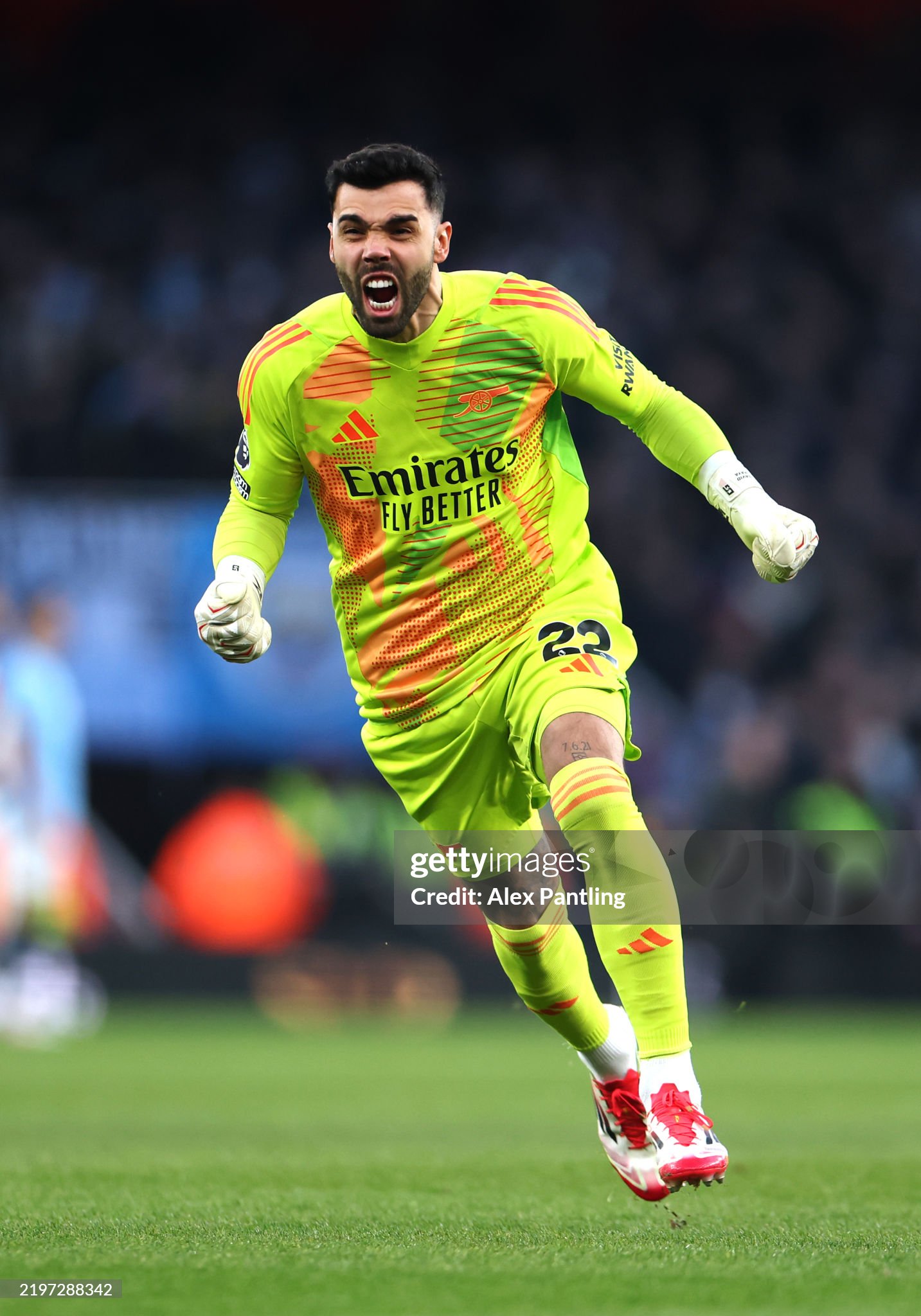 Shirt worn by Raya for Arsenal during the Premier League fixture v Manchester City at the Emirates Stadium on the 2nd February 2025