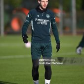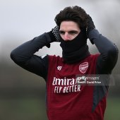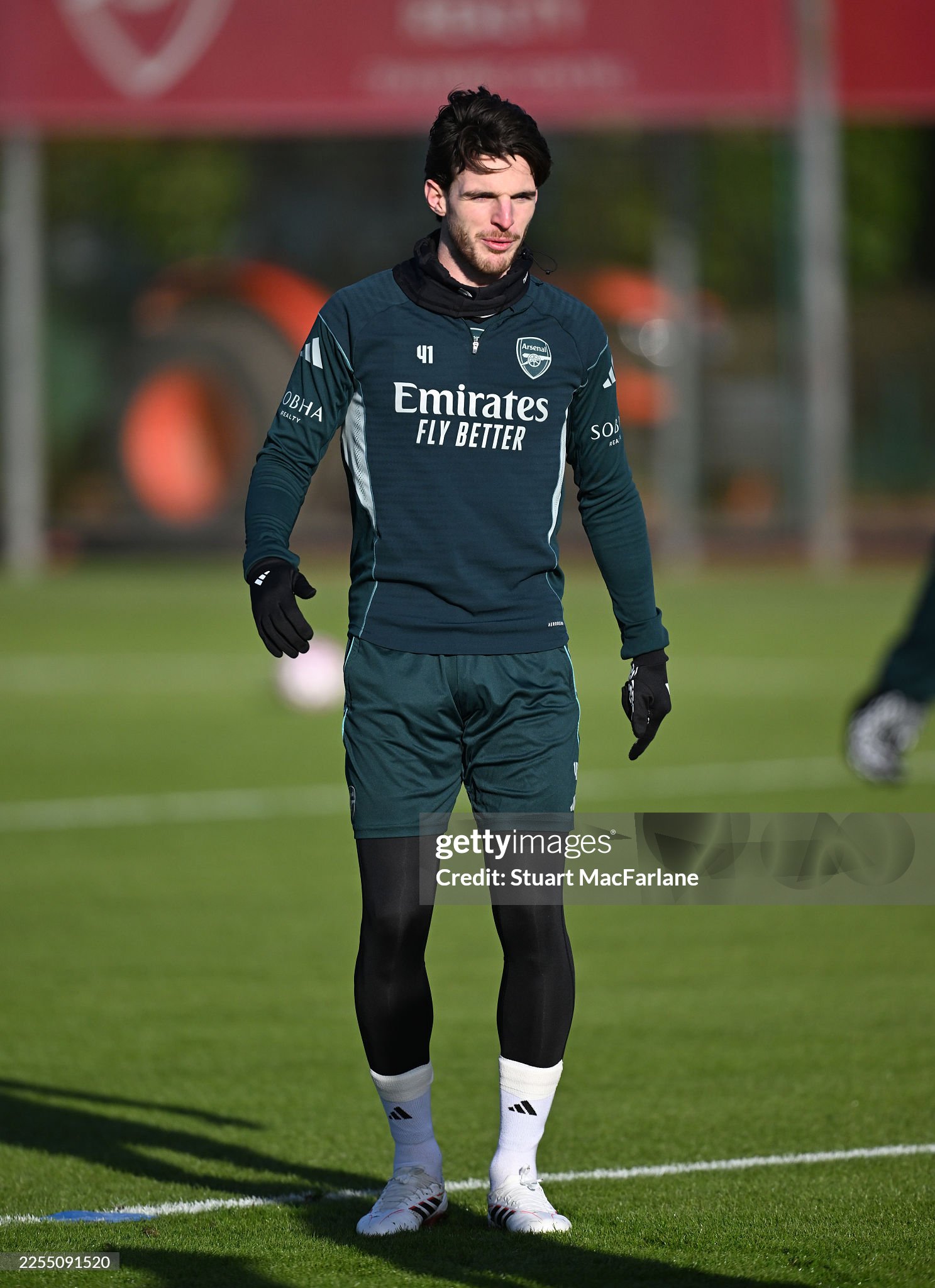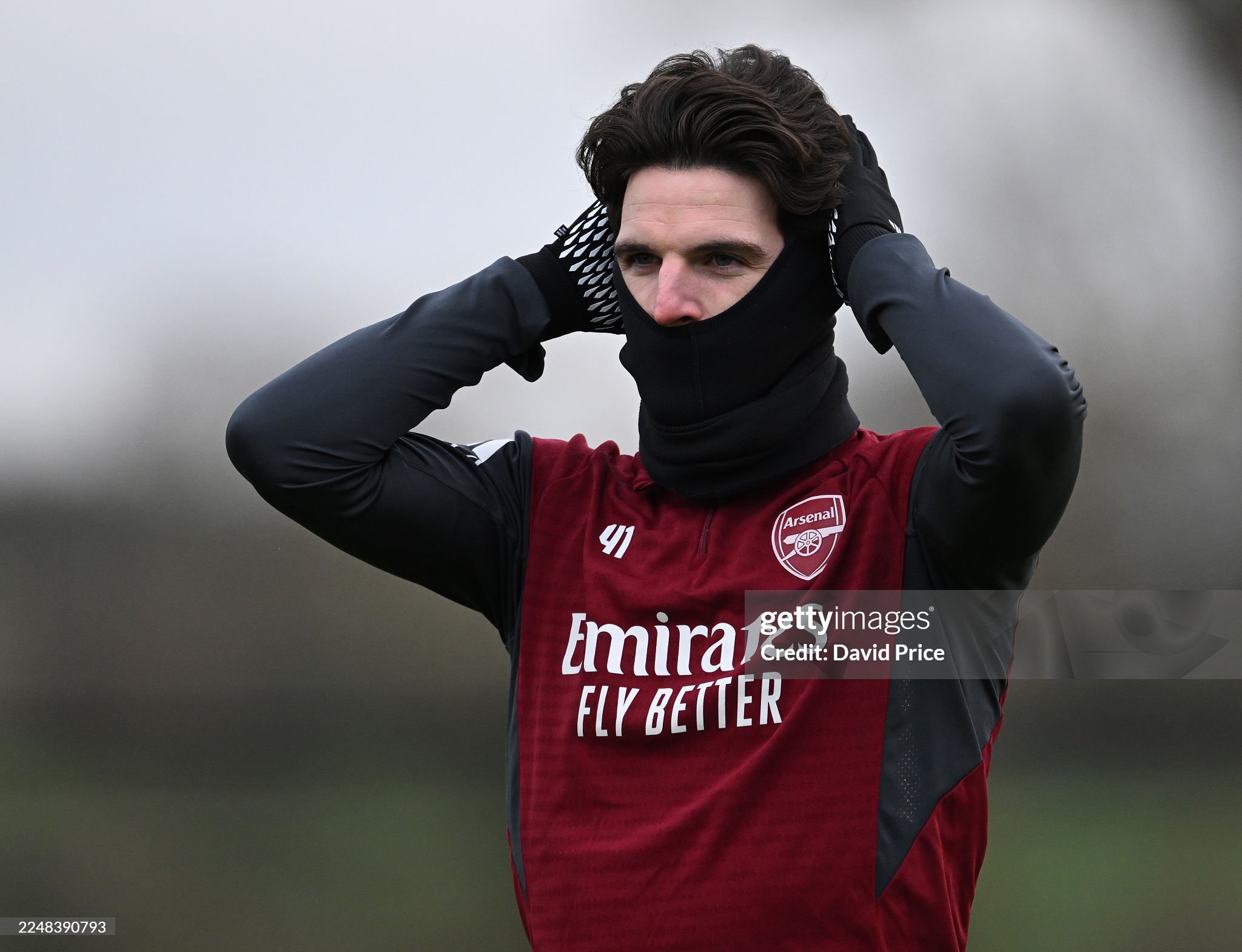 Snood and gloves worn by Rice during training sessions for Arsenal during the 2025 - 2026 Premier League & UEFA Champions League season