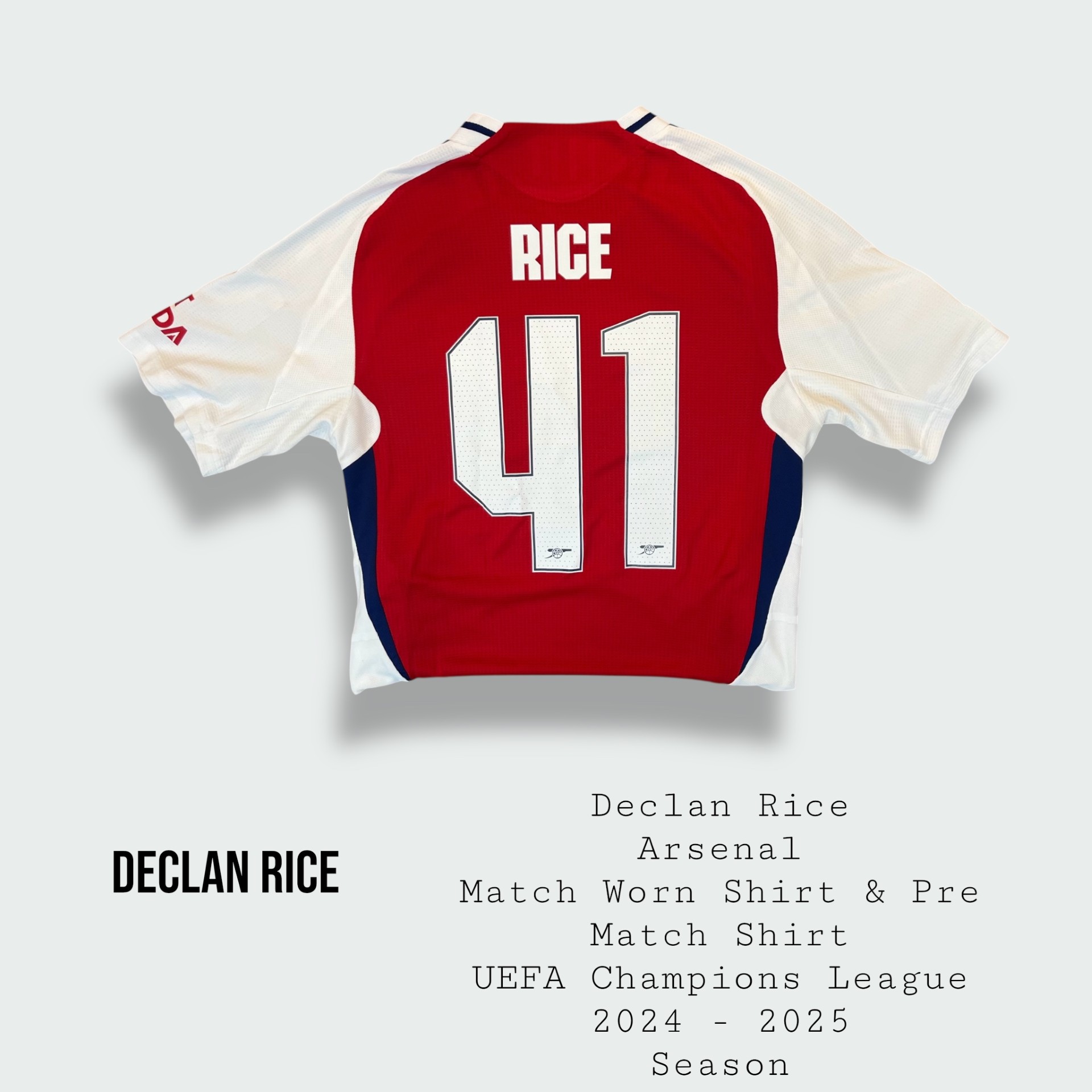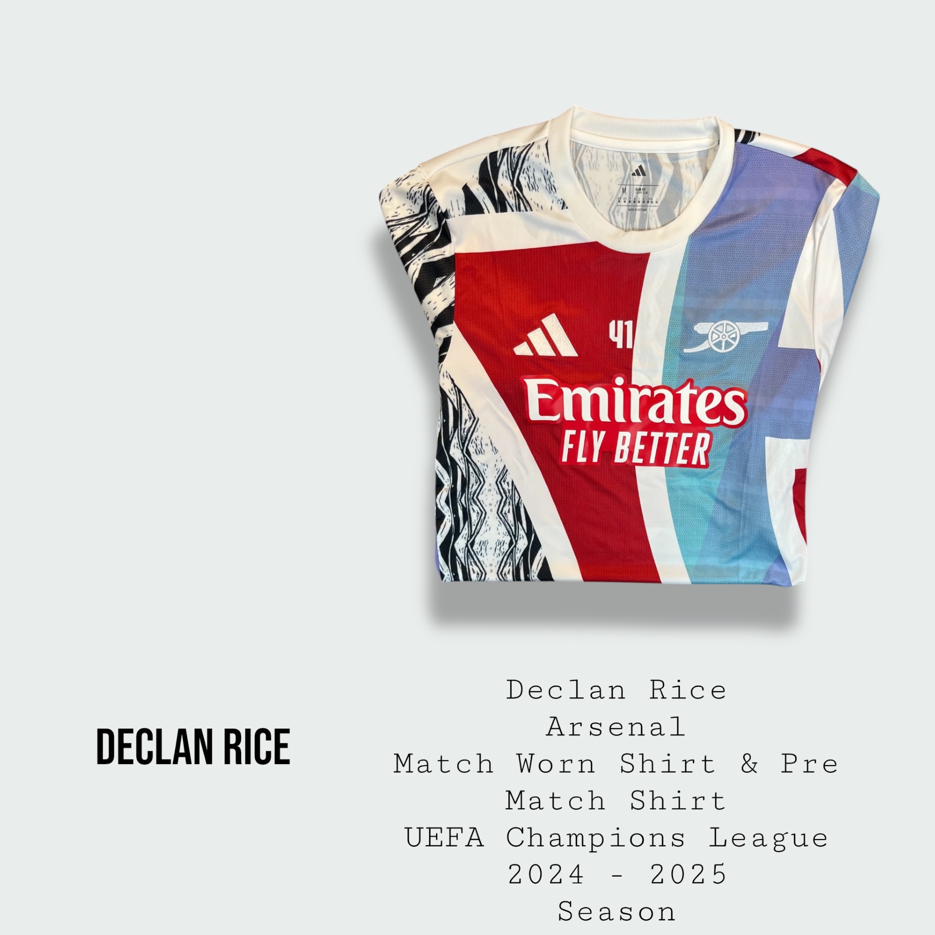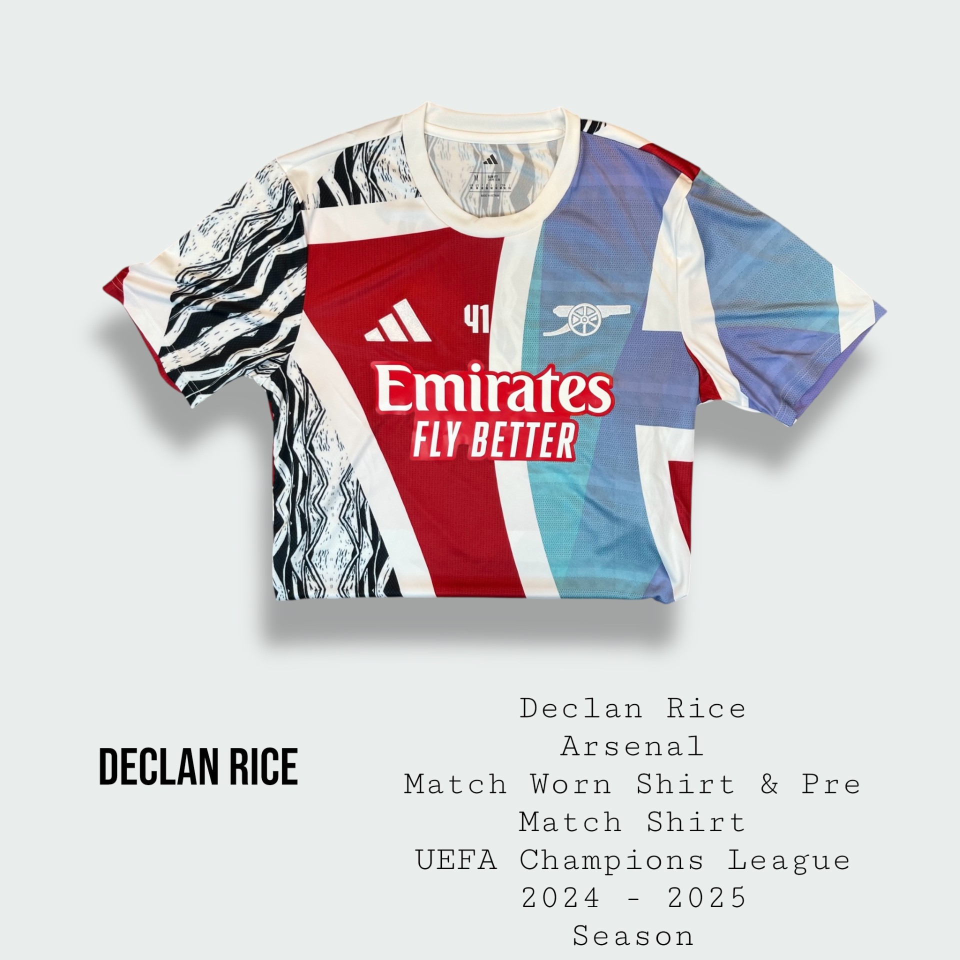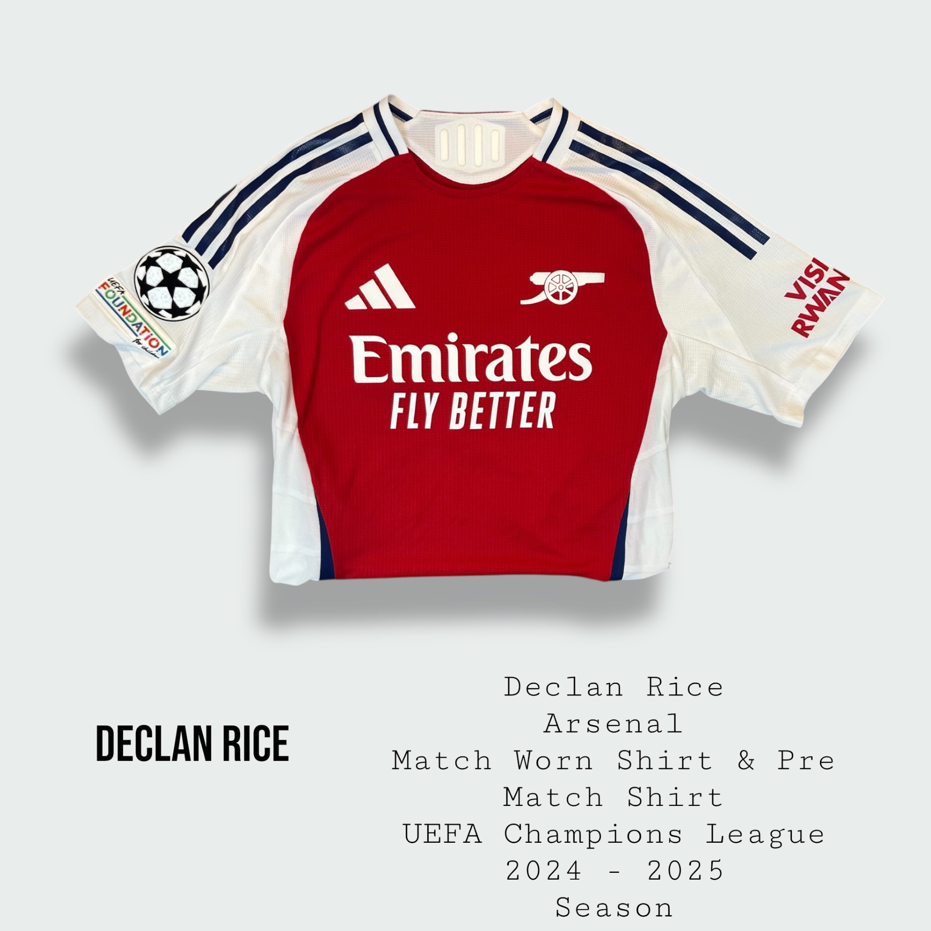 Declan Rice Match Worn Arsenal Champions League Shirt 2024 – 2025 Season & Pre Match Warm Up Top