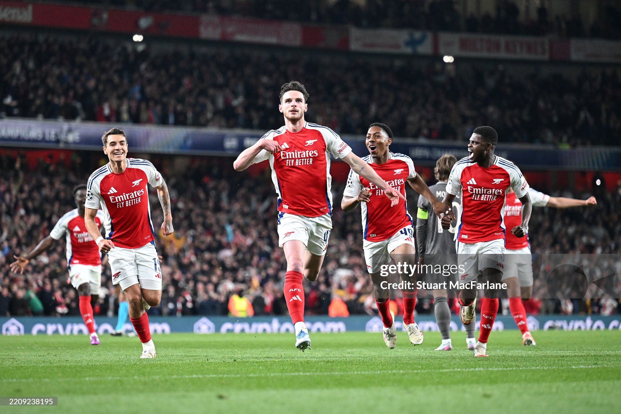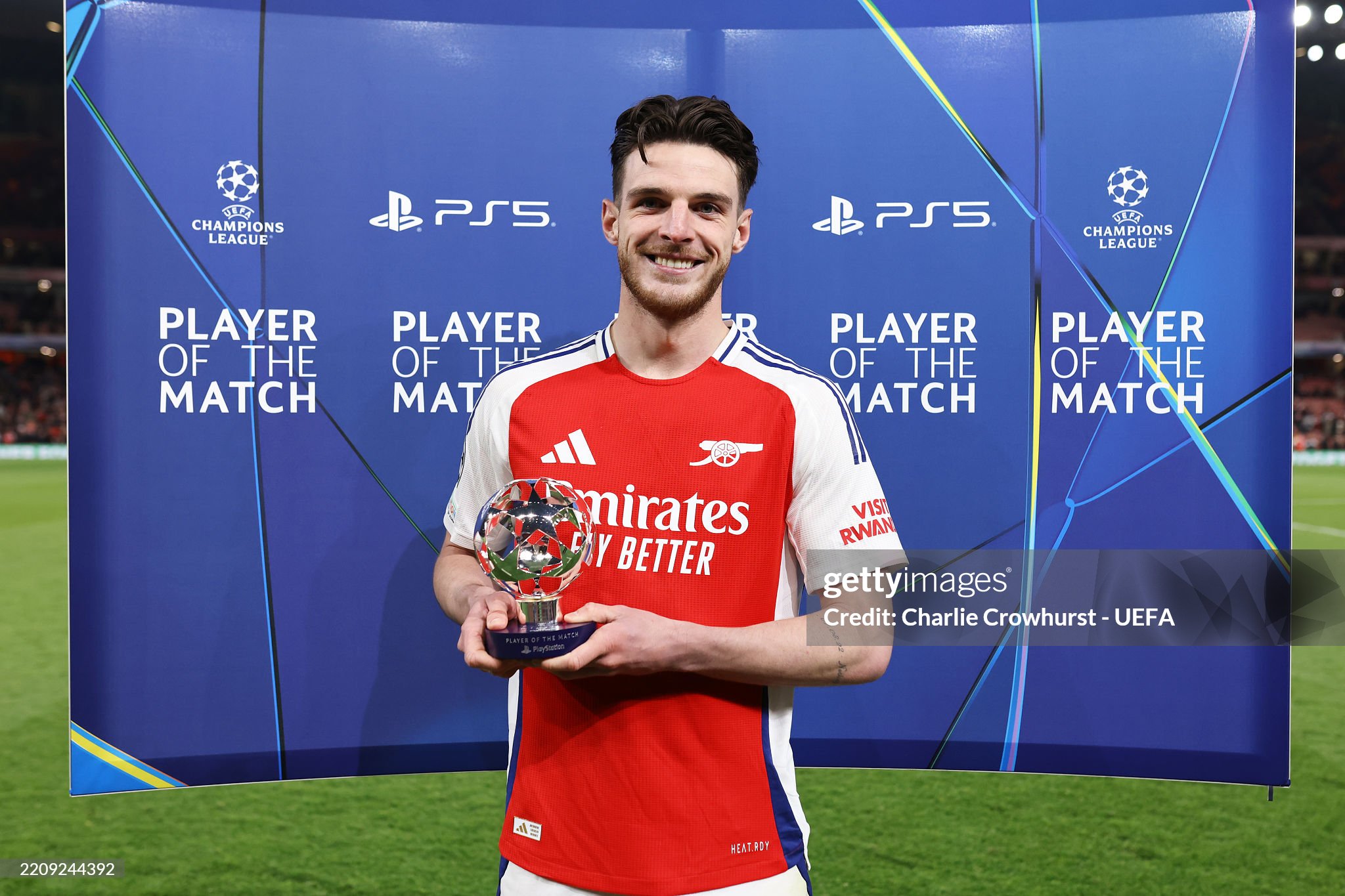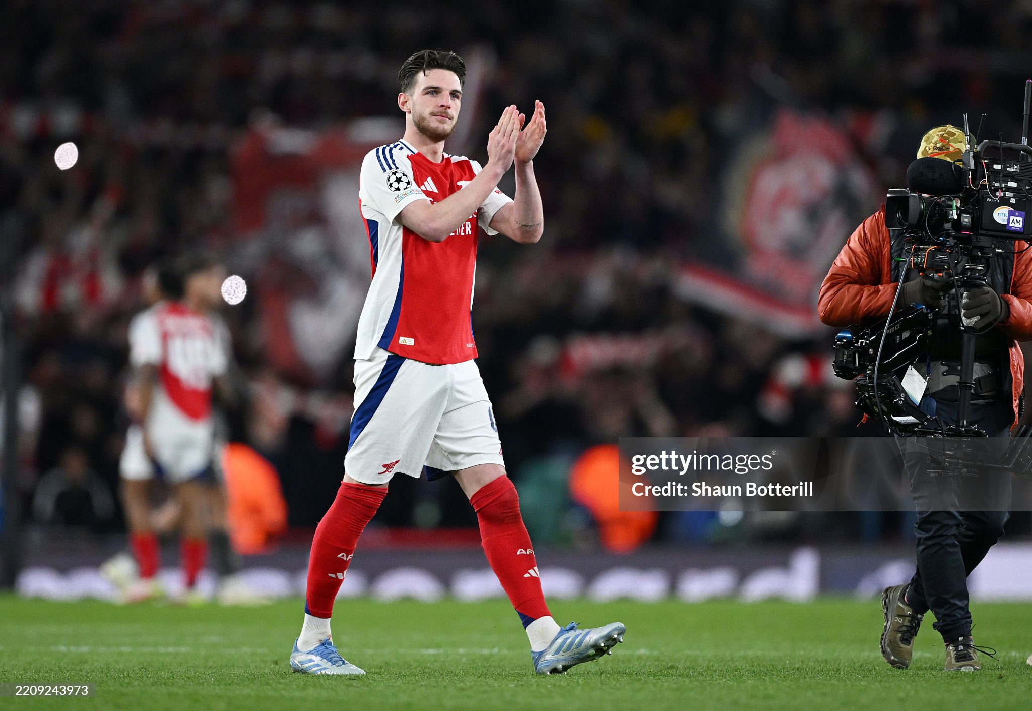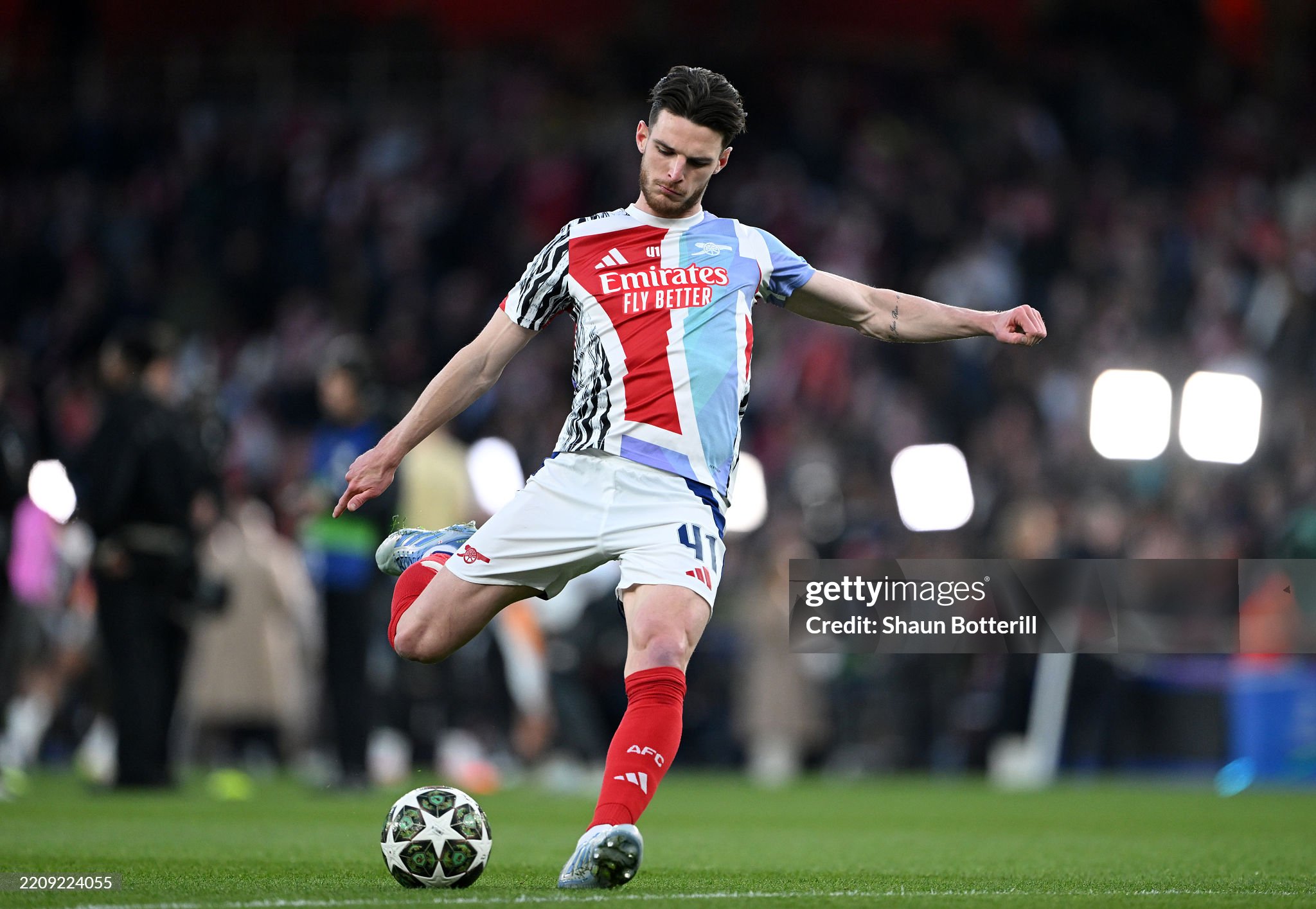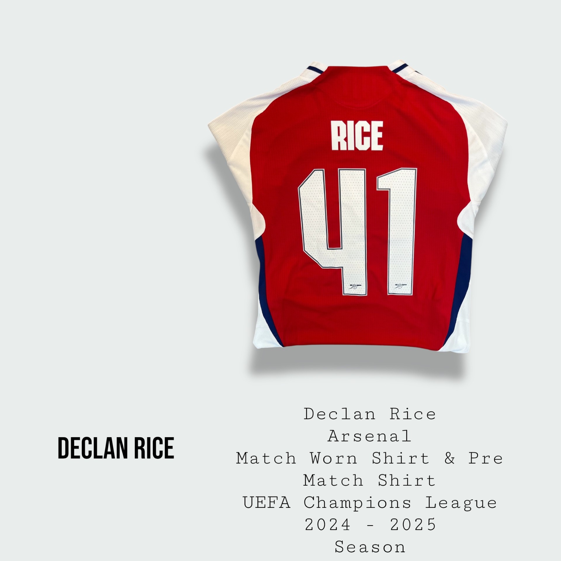 Declan Rice Match Worn Arsenal Champions League Shirt 2024 – 2025 Season & Pre Match Warm Up Top