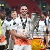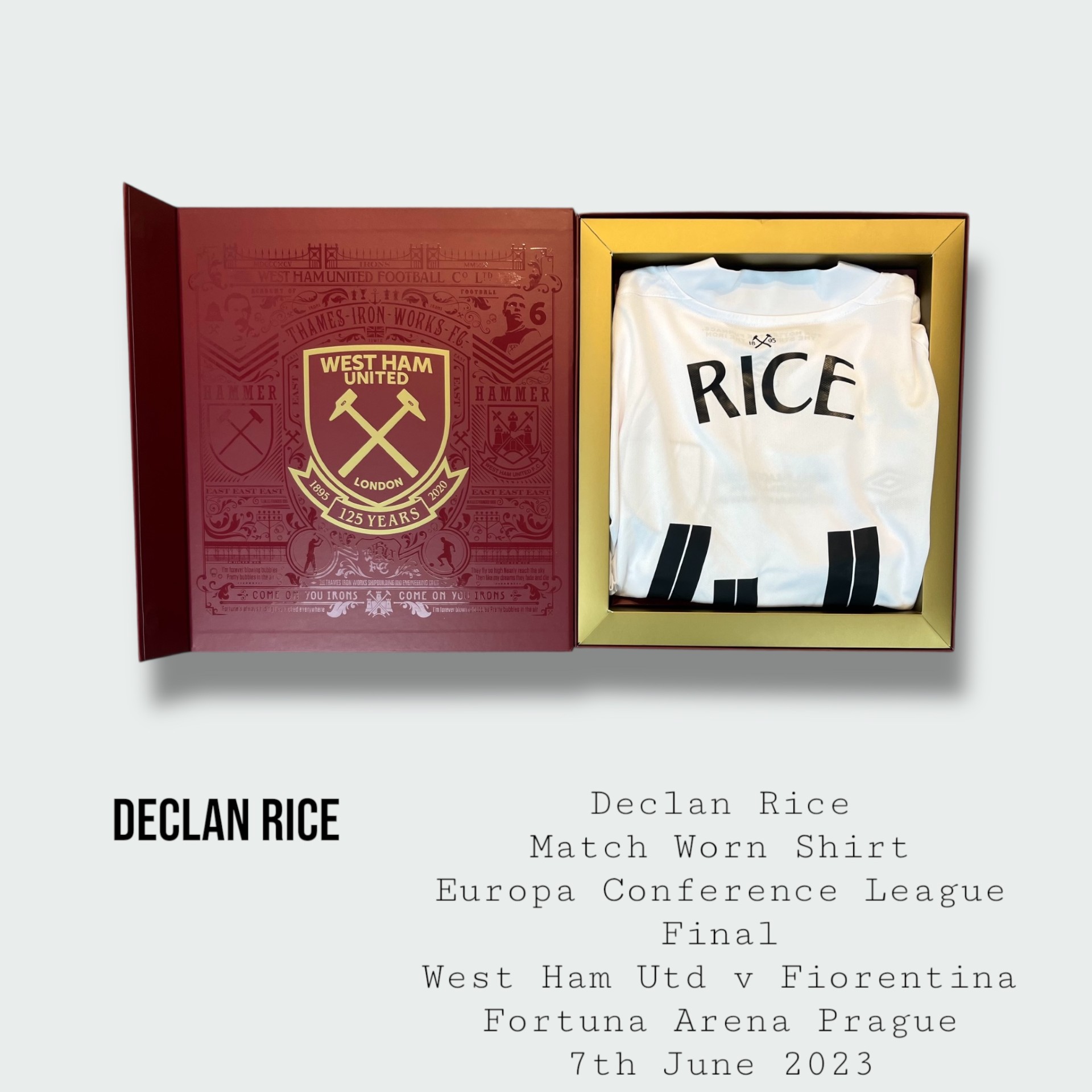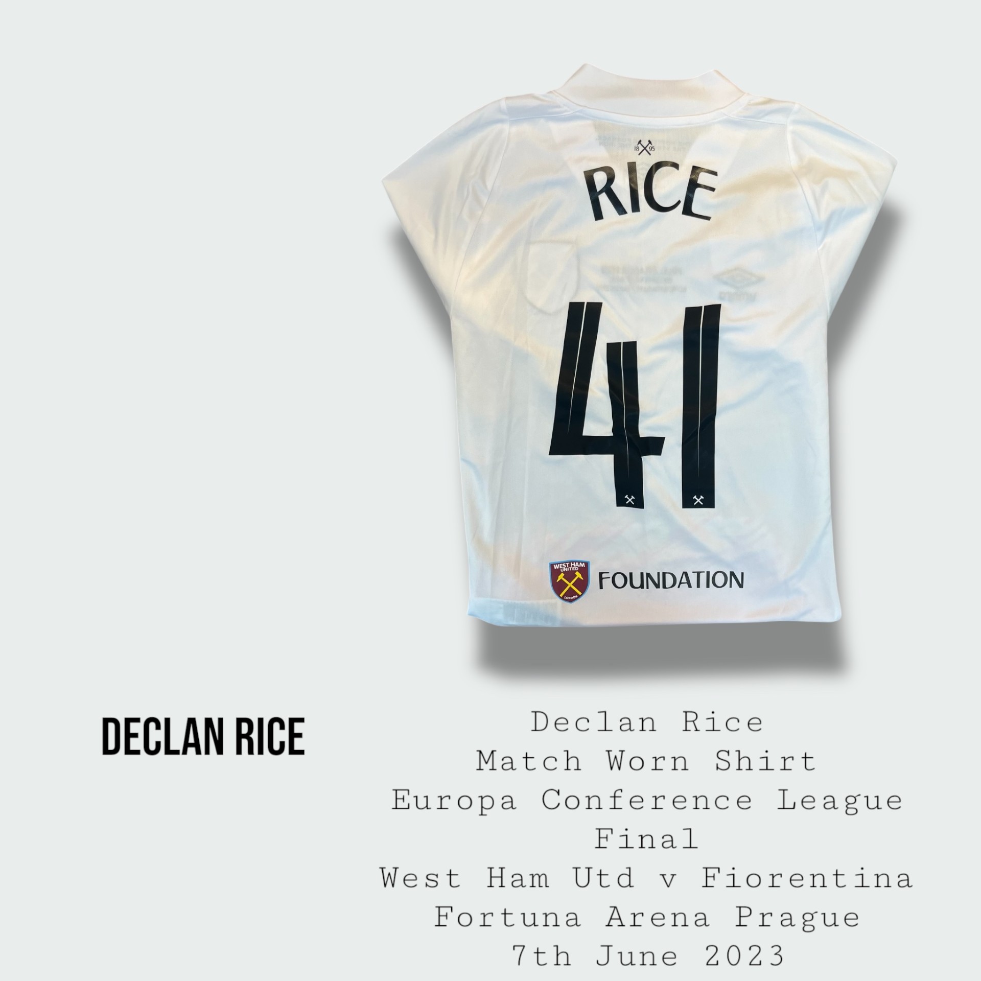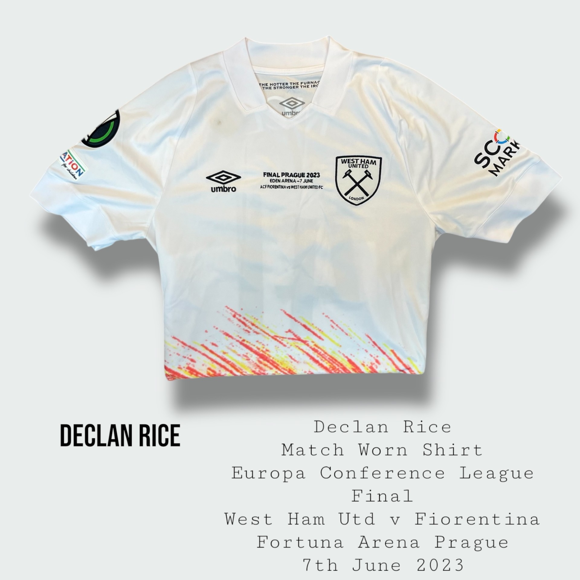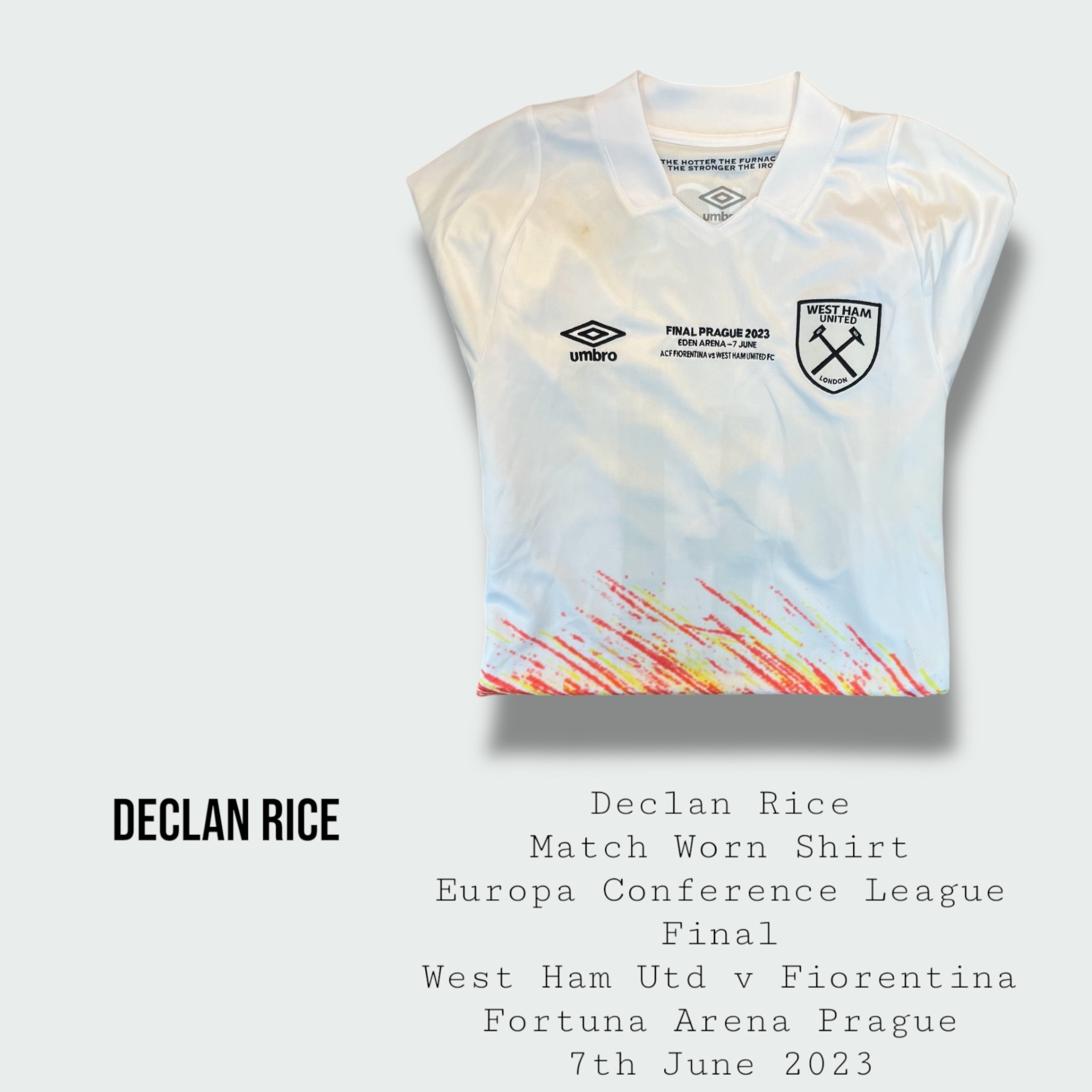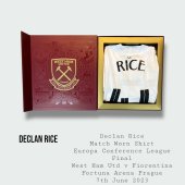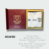 Incredibly rare and historic Declan Rice match worn West Ham United Europa Conference League final shirt