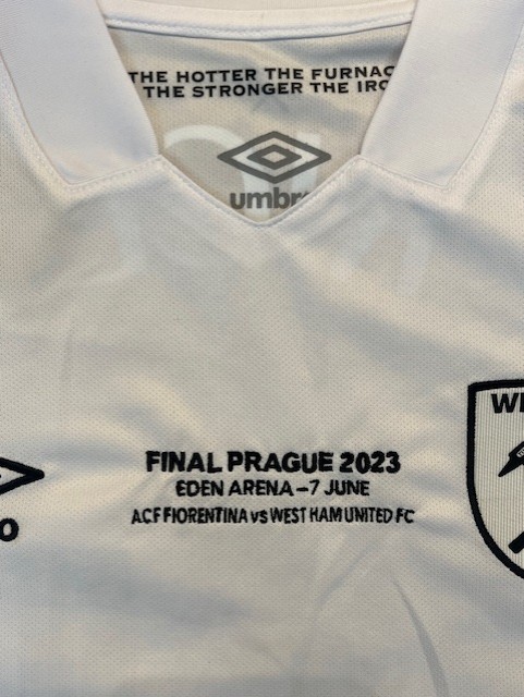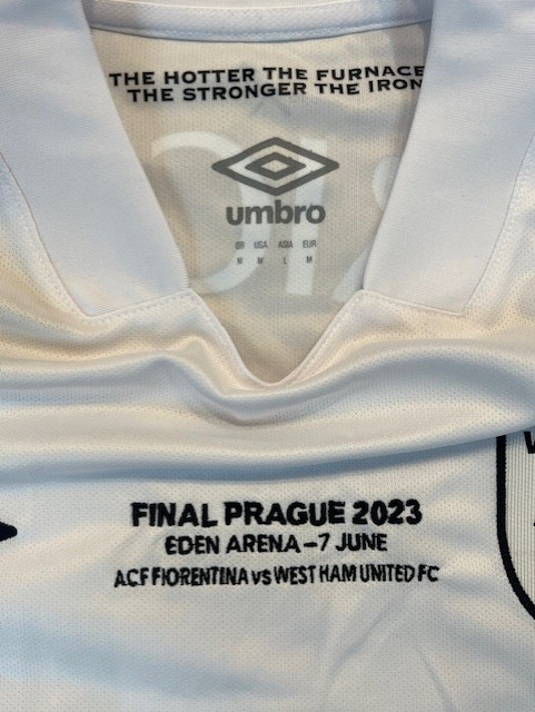 Shirt worn by the West Ham United captain during the Europa Conference League final v Fiorentina at the Fortuna Arena in Prague on the 7th June 2023