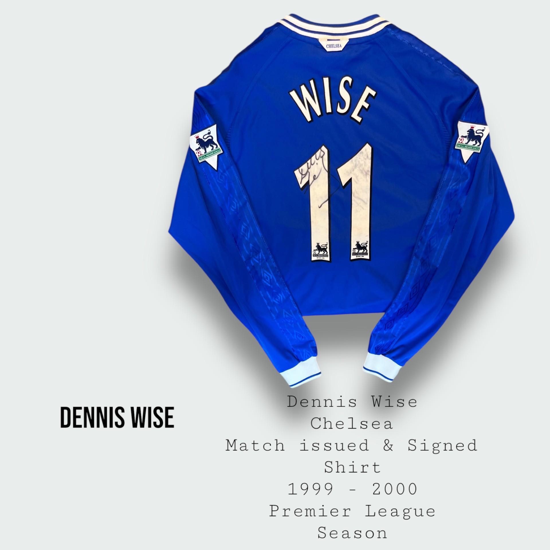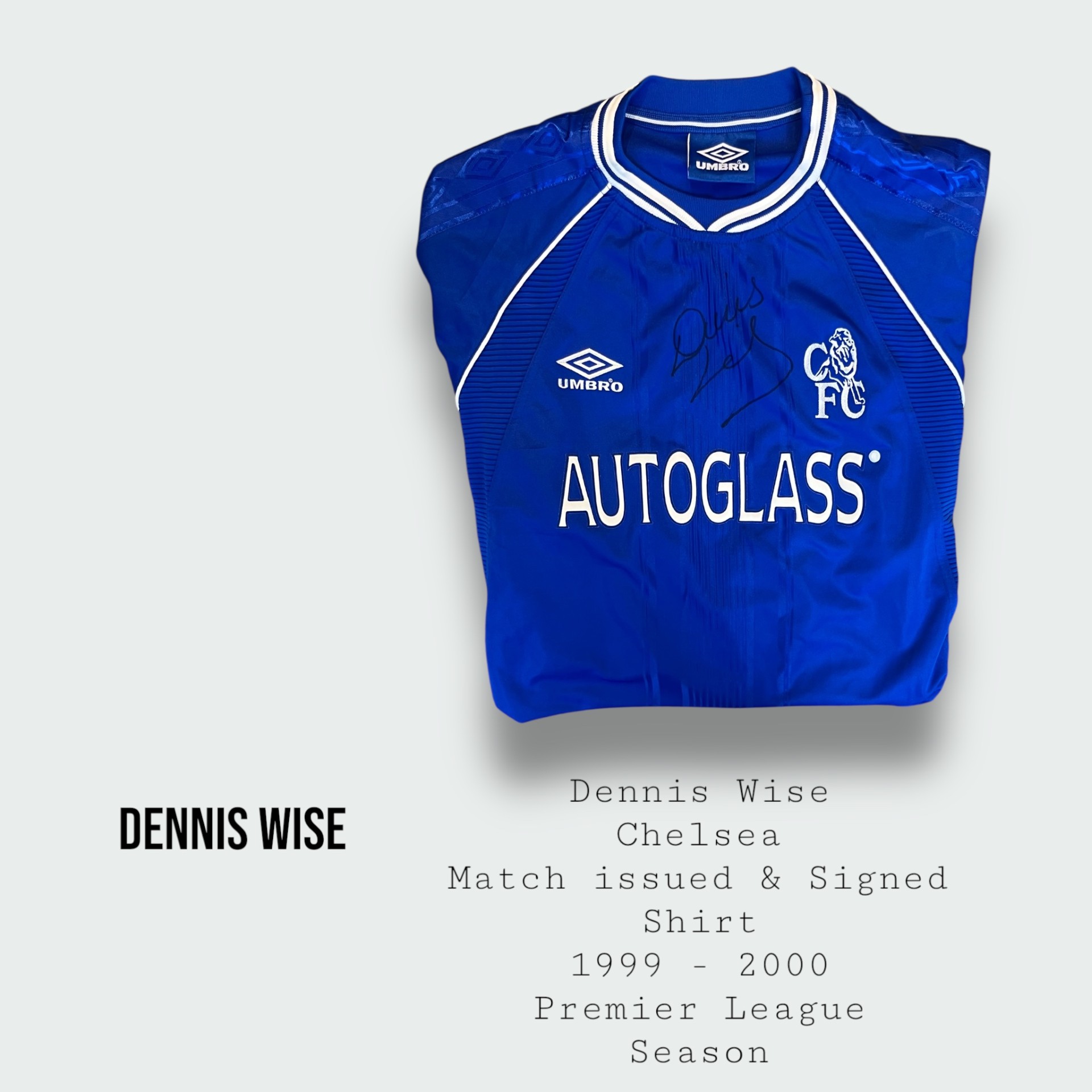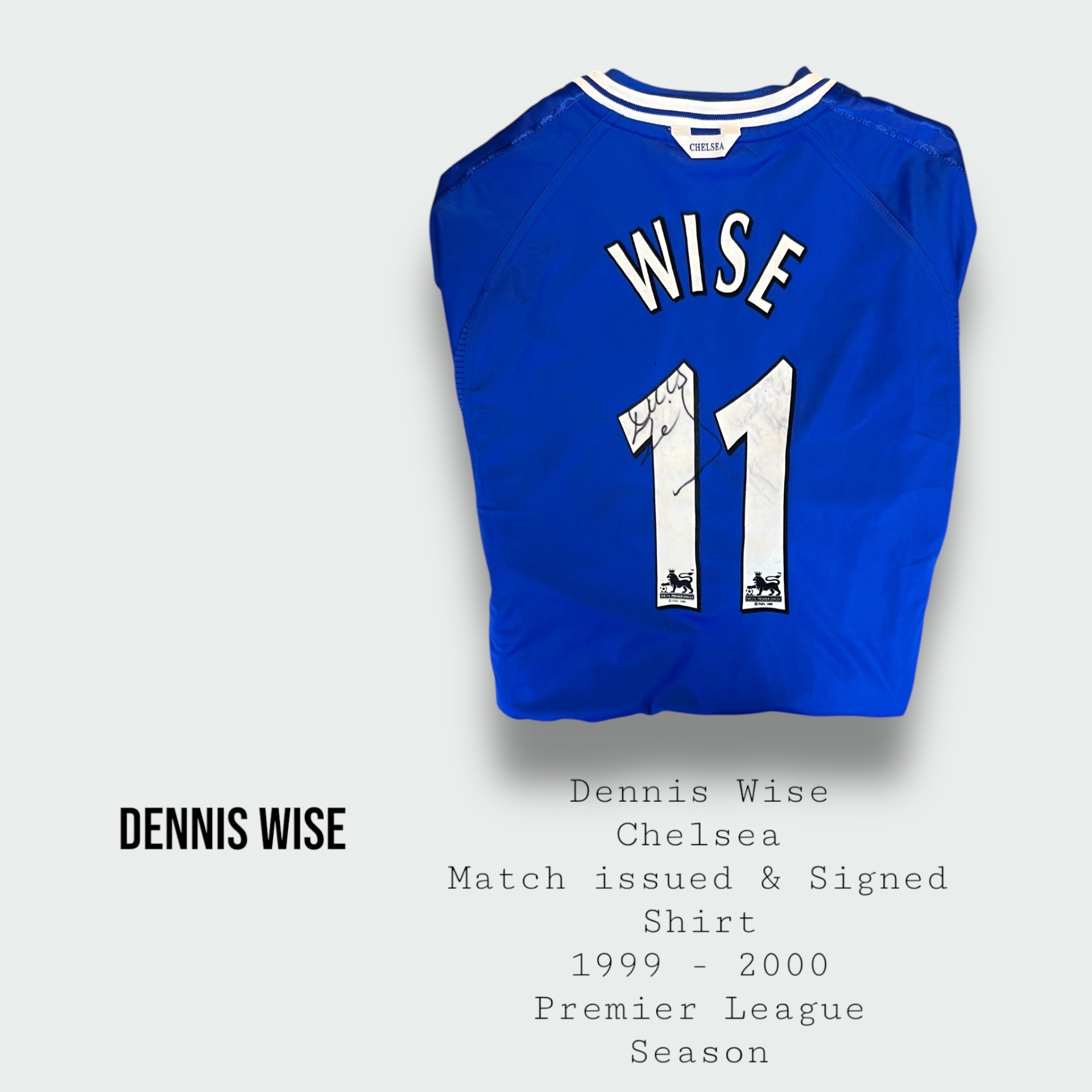 Dennis Wise Match Issued & Signed Chelsea Premier League Shirt 1999 – 2000 Season