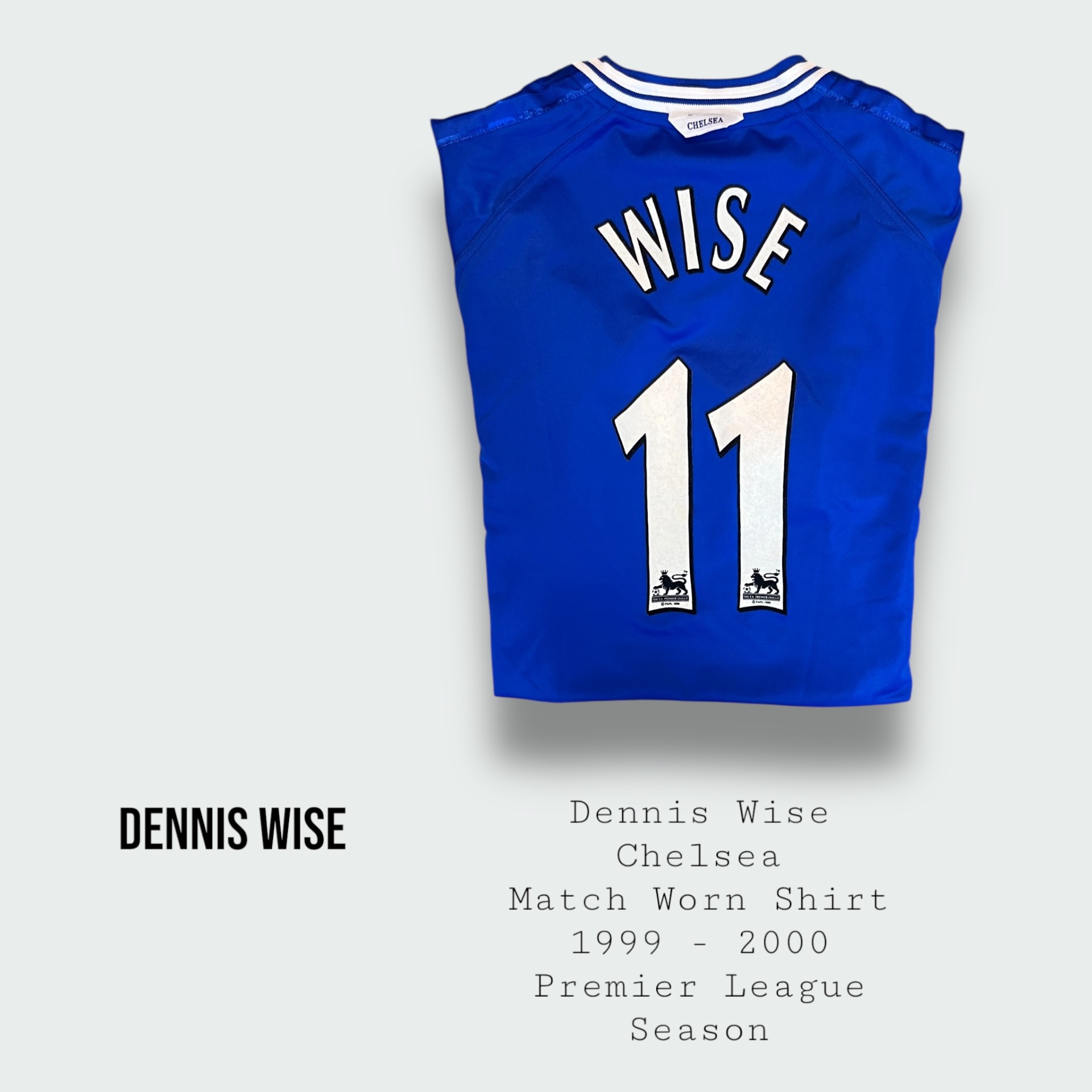 Dennis Wise Match Worn Chelsea Premier League Shirt 1999 – 2000 Season