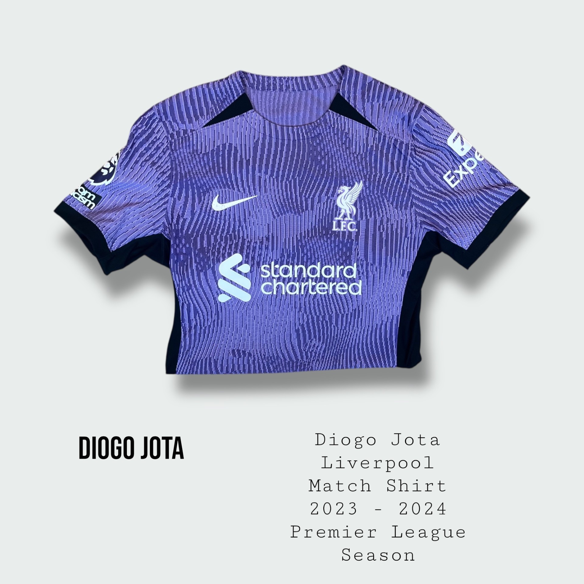 Shirt remains unworn and unused and was prepared for Jota to wear on match day but remained as a unworn spare within the Liverpool match day kit