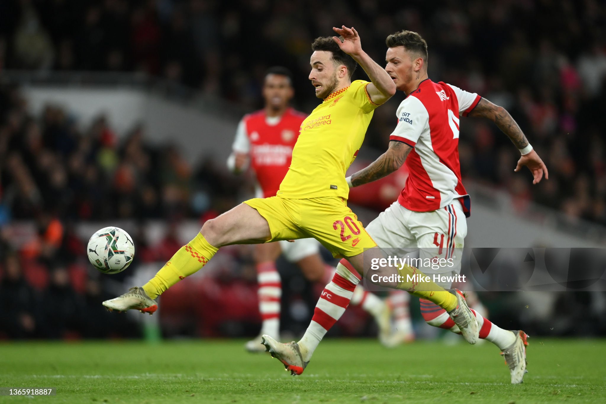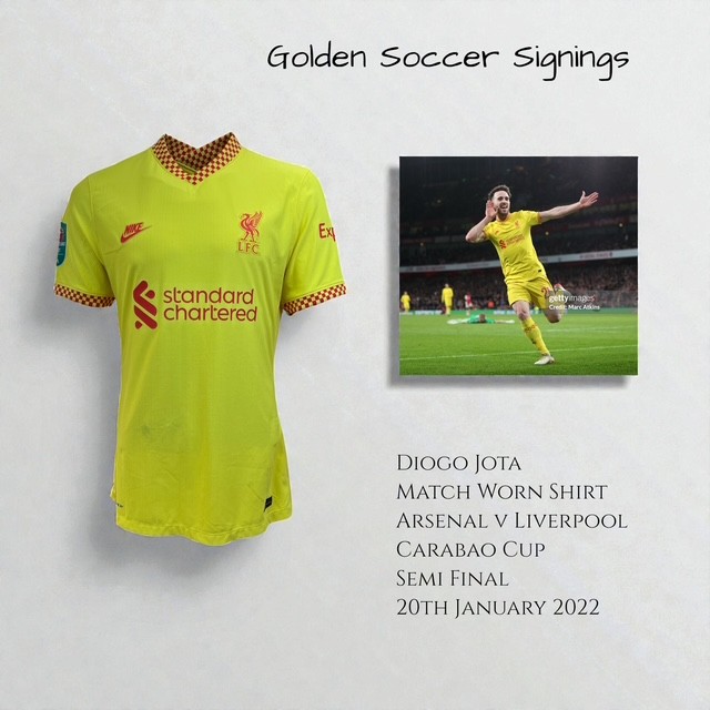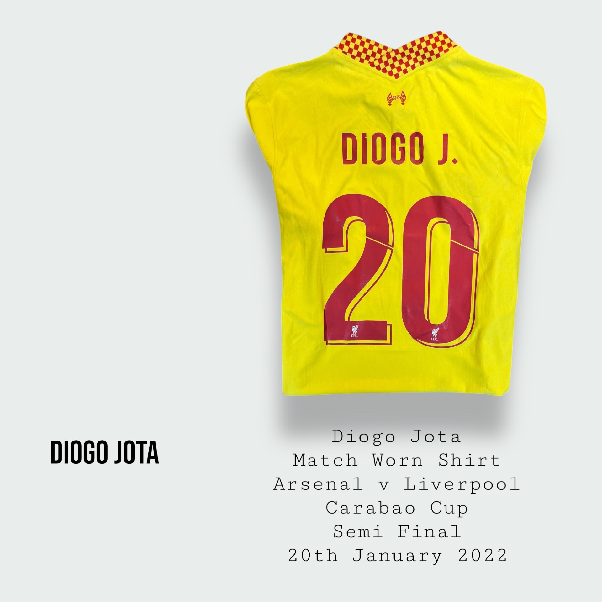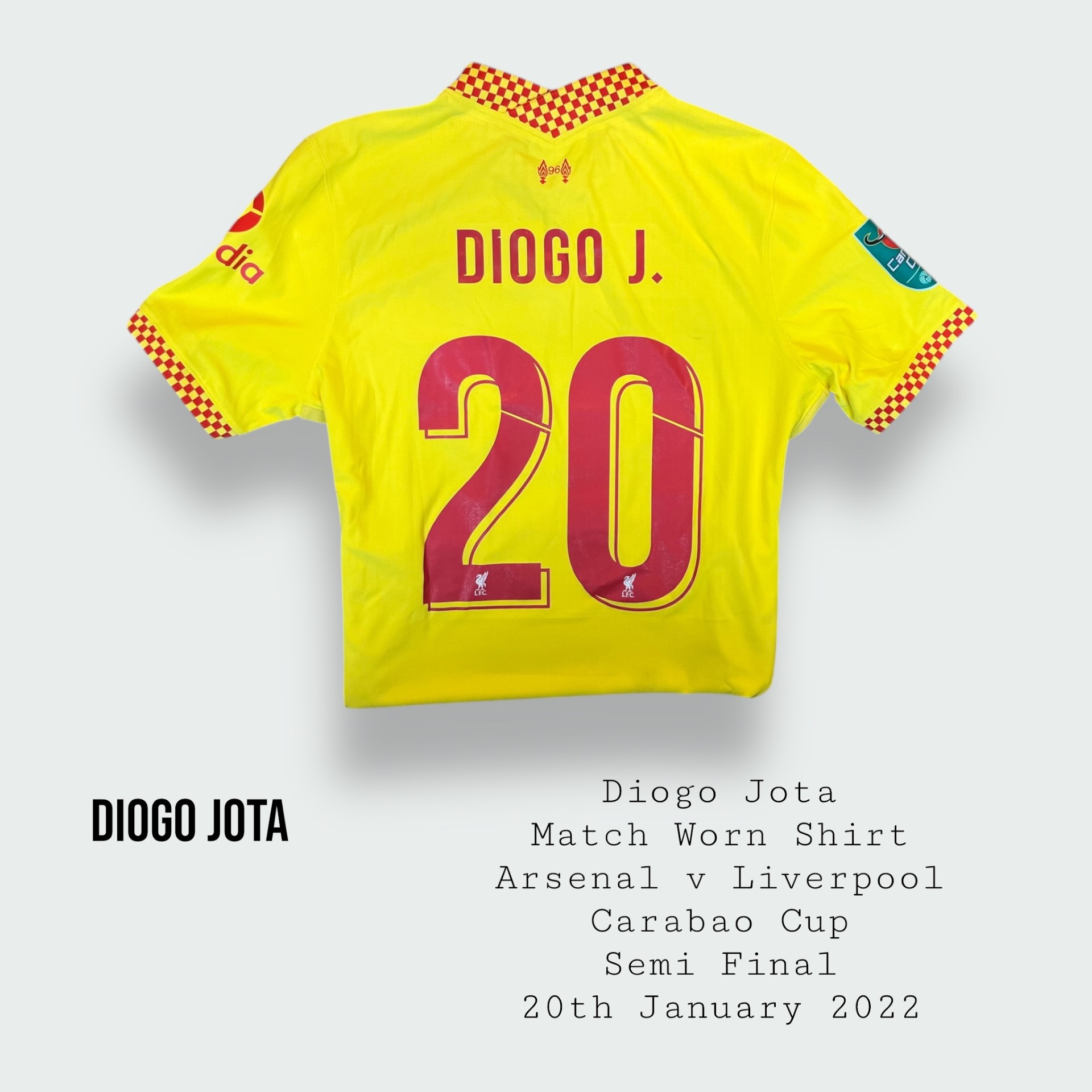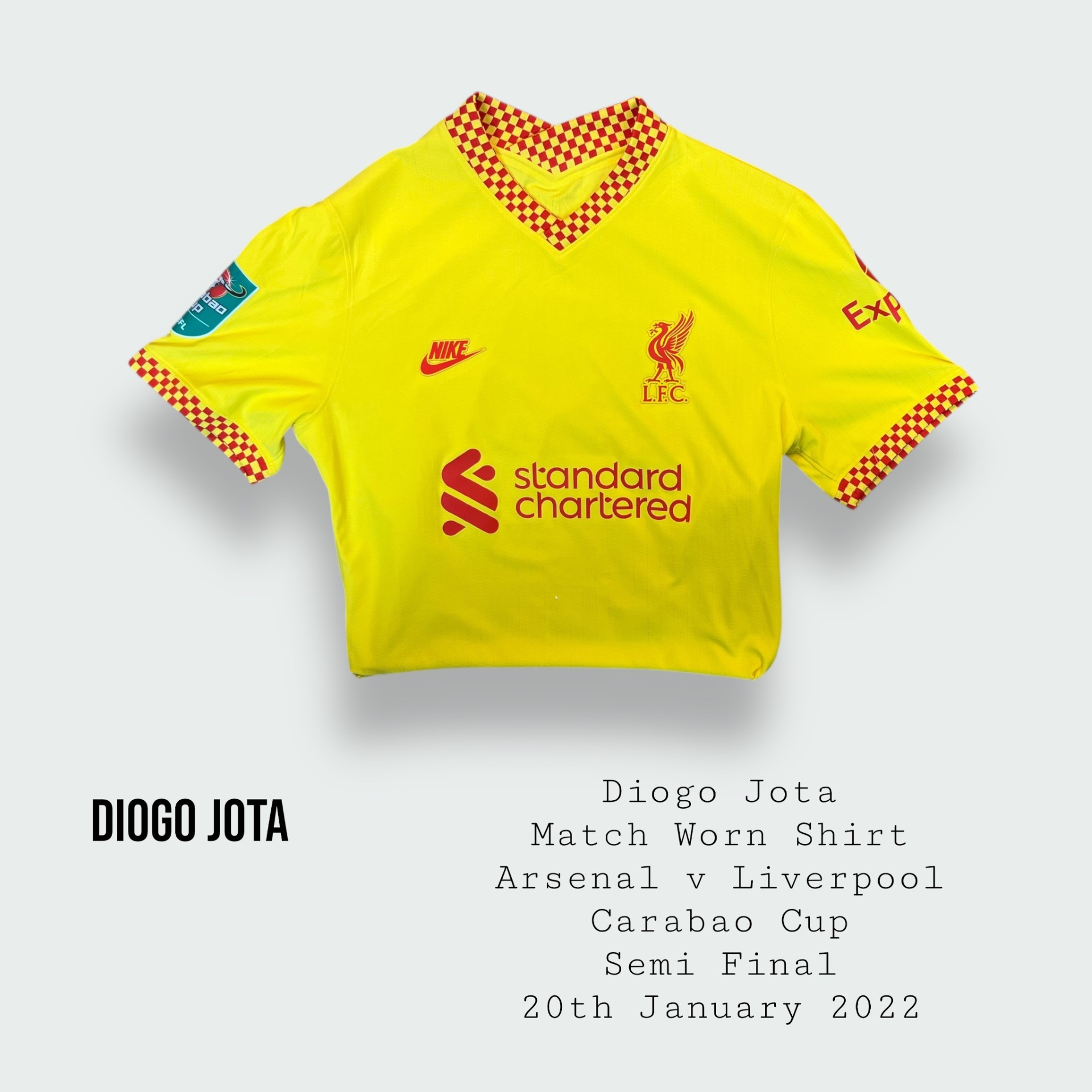 Shirt worn by Jota for Liverpool during the Carabao Cup Semi Final match v Arsenal at the Emirates Stadium in London on the 20th January 2022