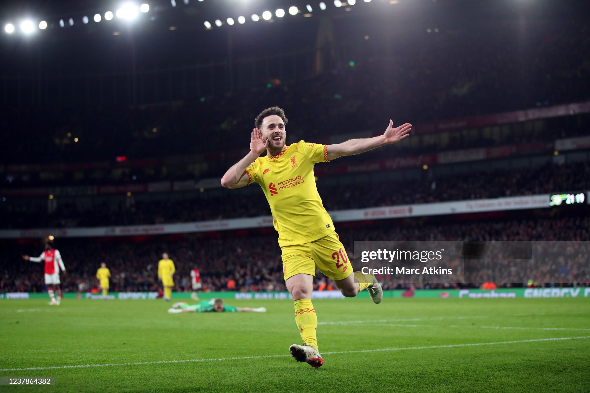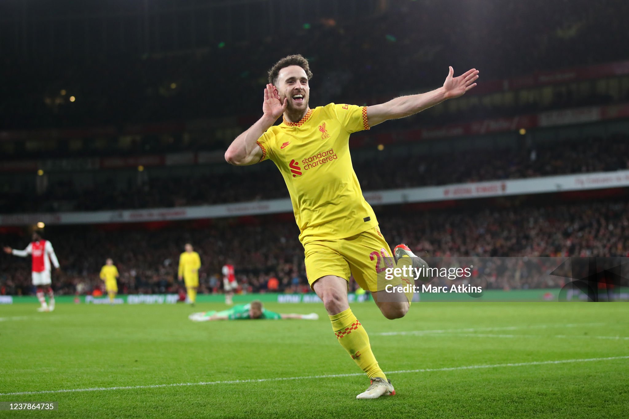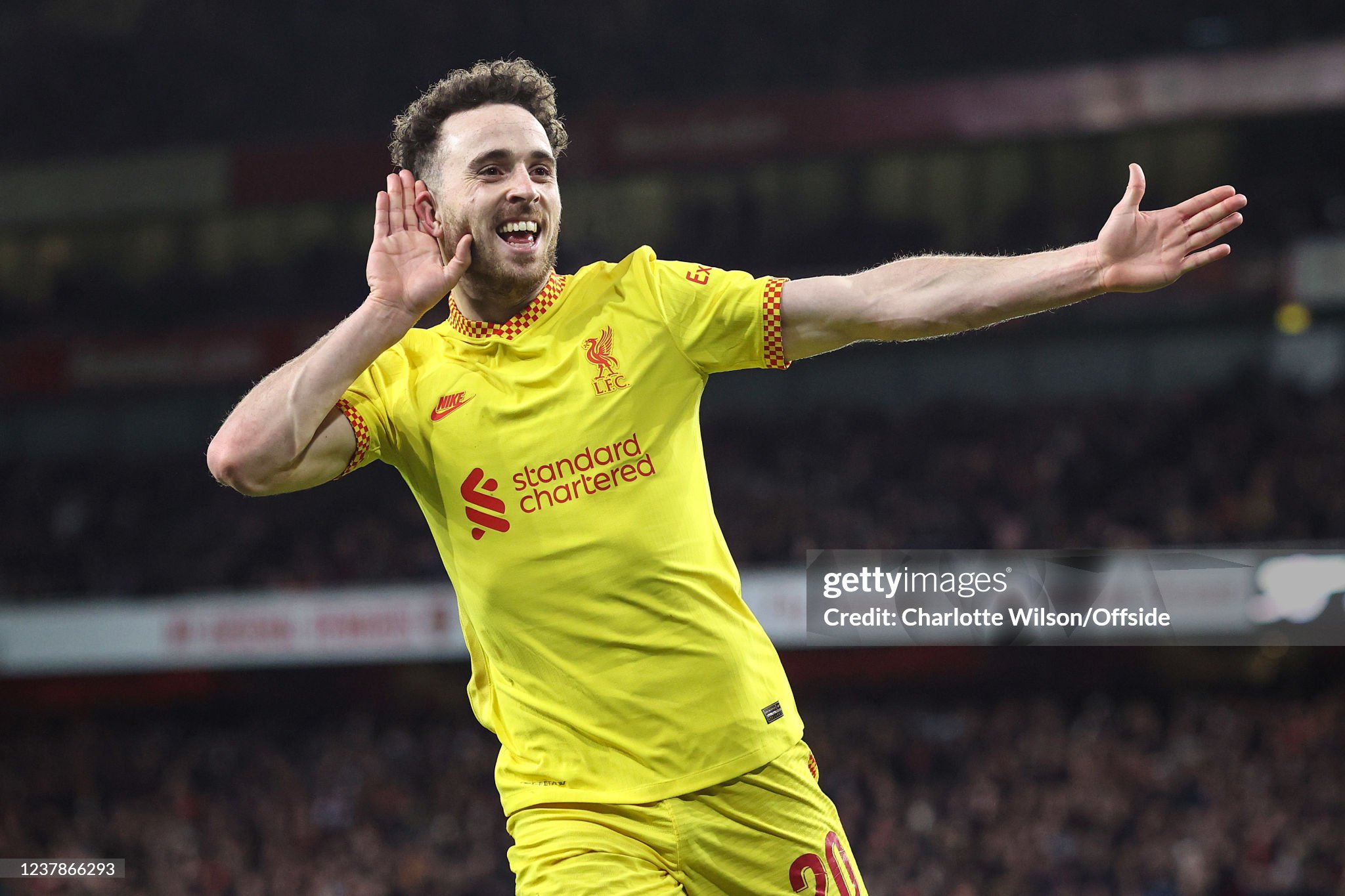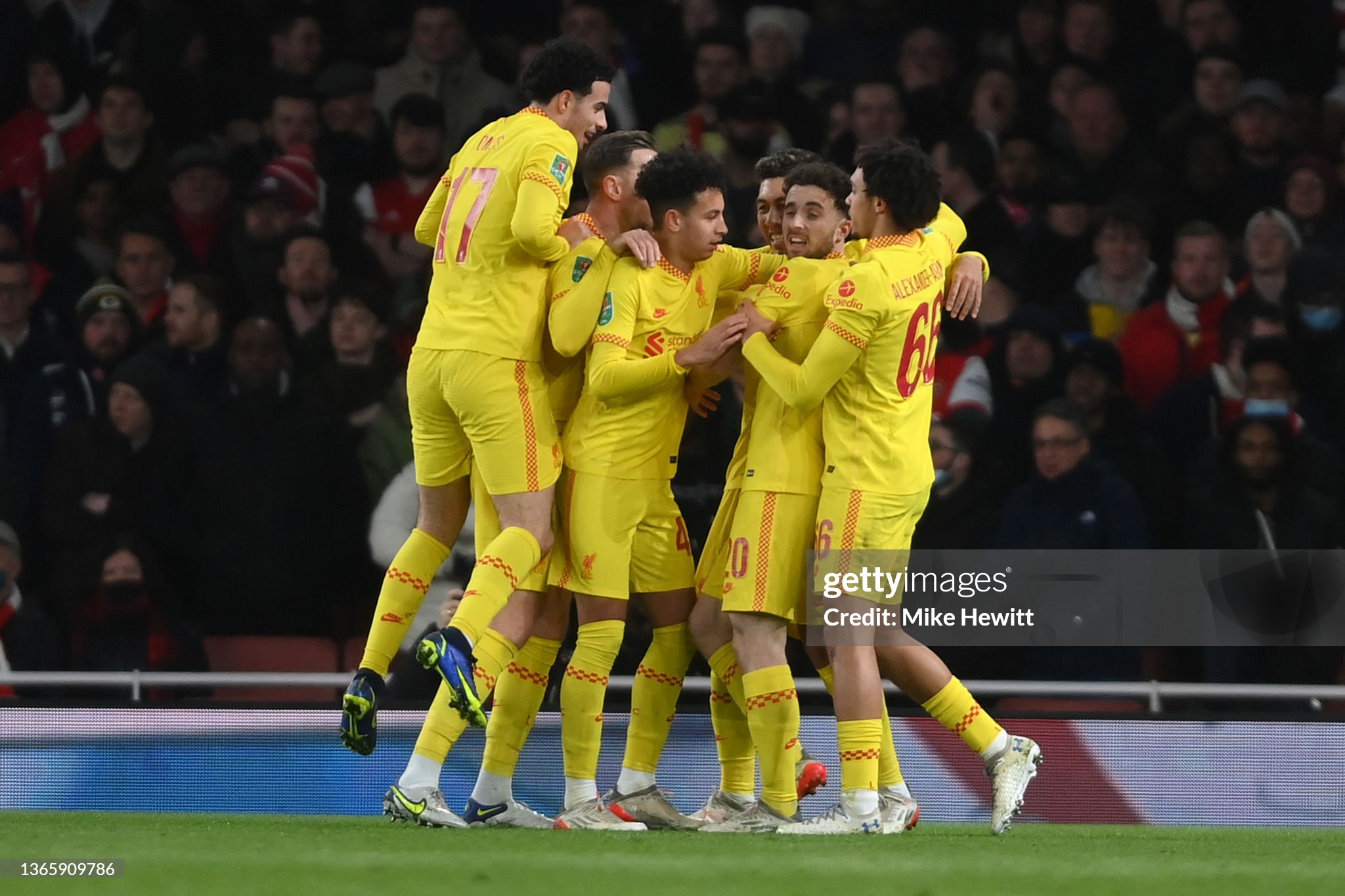 Shirt worn by Jota for Liverpool during the Carabao Cup Semi Final match v Arsenal at the Emirates Stadium in London on the 20th January 2022