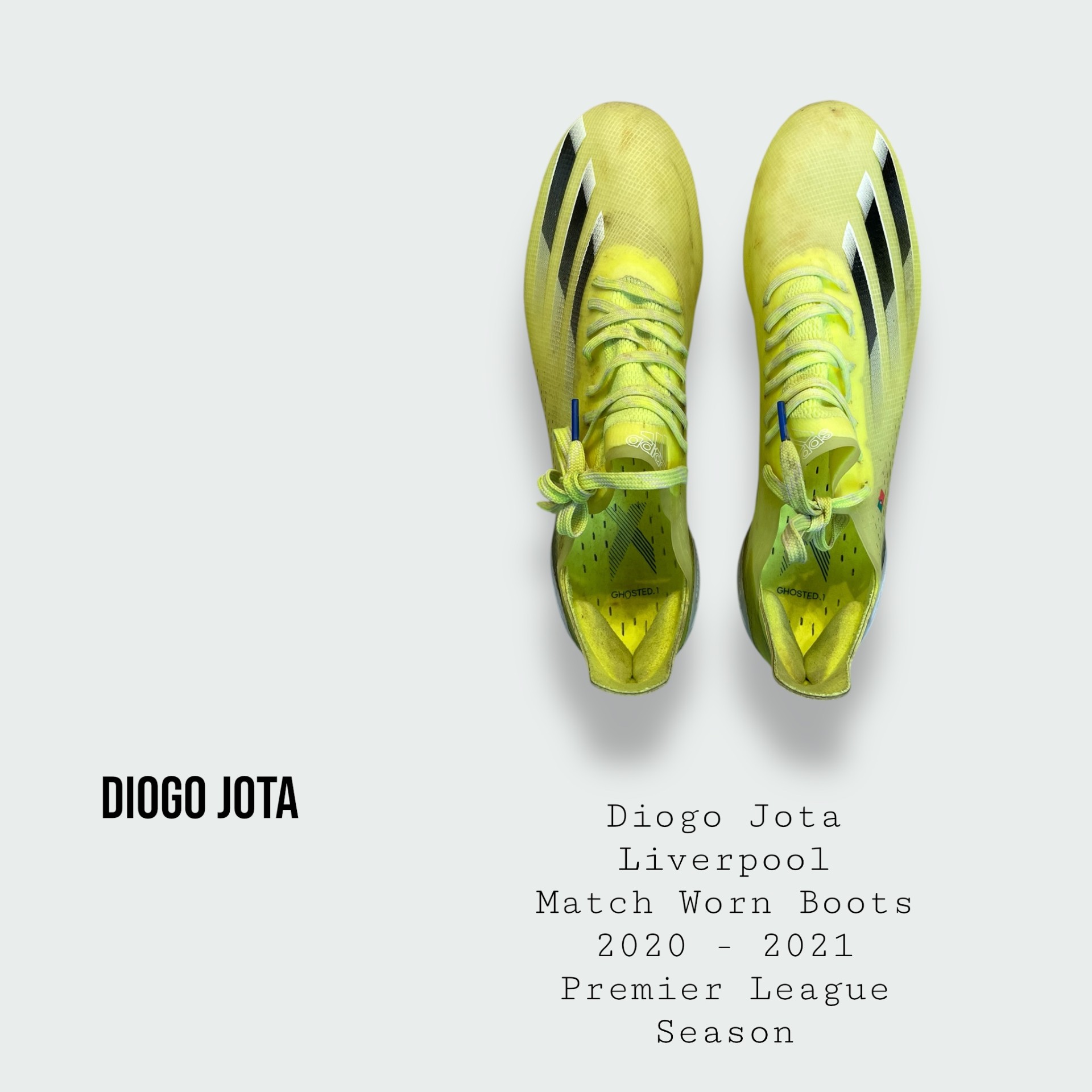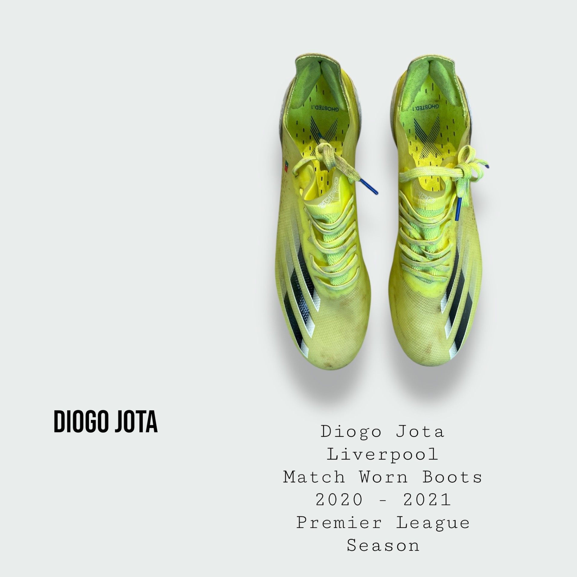 Boots worn by the late great Diogo Jota during the 2020 - 2021 Premier League & UEFA Champions League season and Diogo's first and debut season at the club