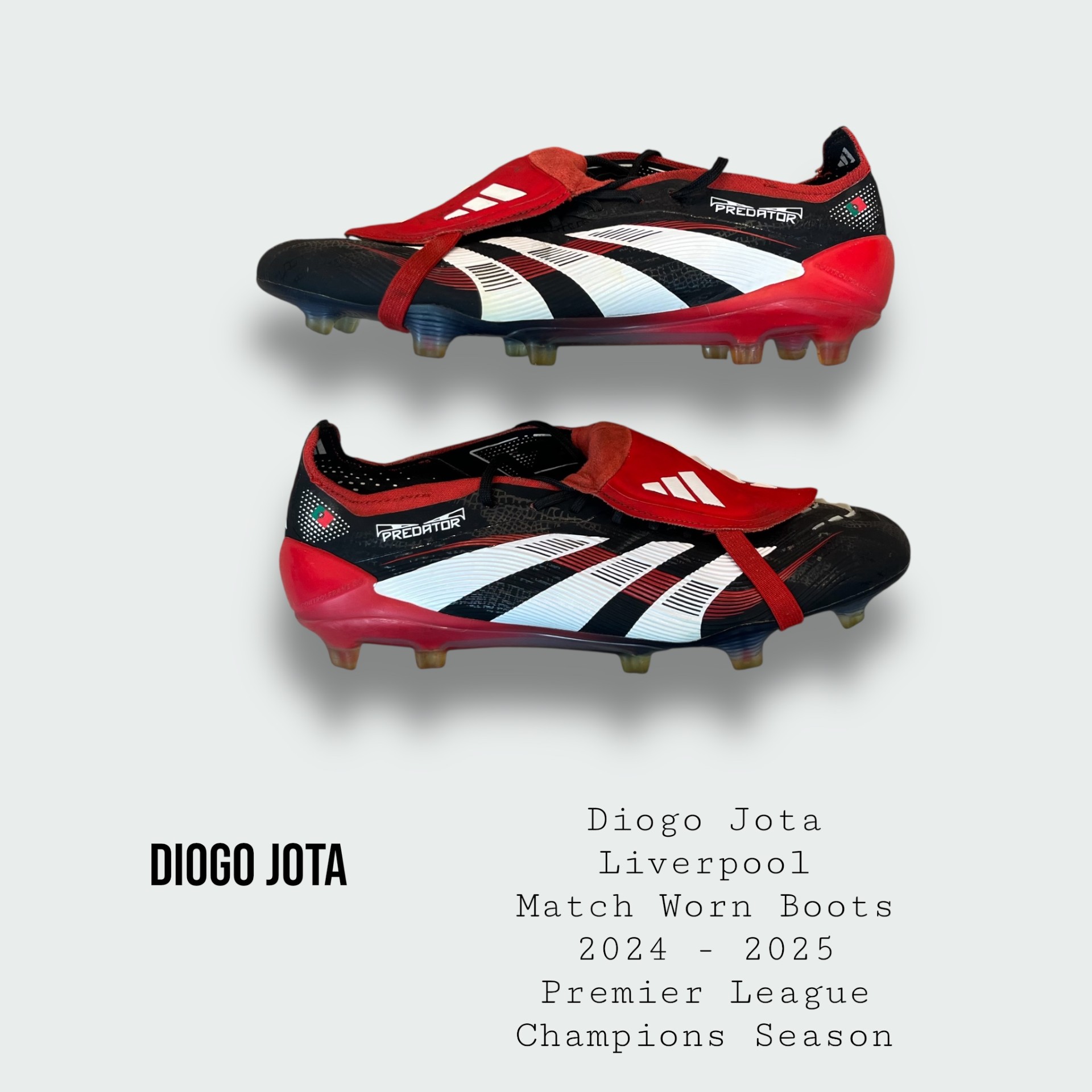 Boots worn by the late great Diogo Jota during the 2024 - 2025 Premier League title winning season and tragically his last ever season at the club