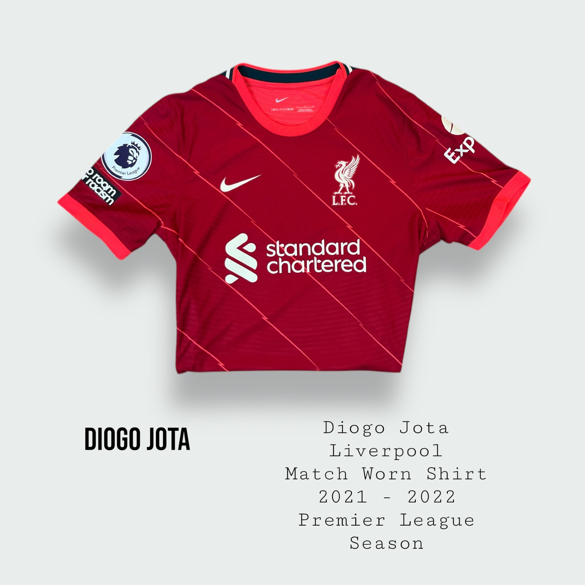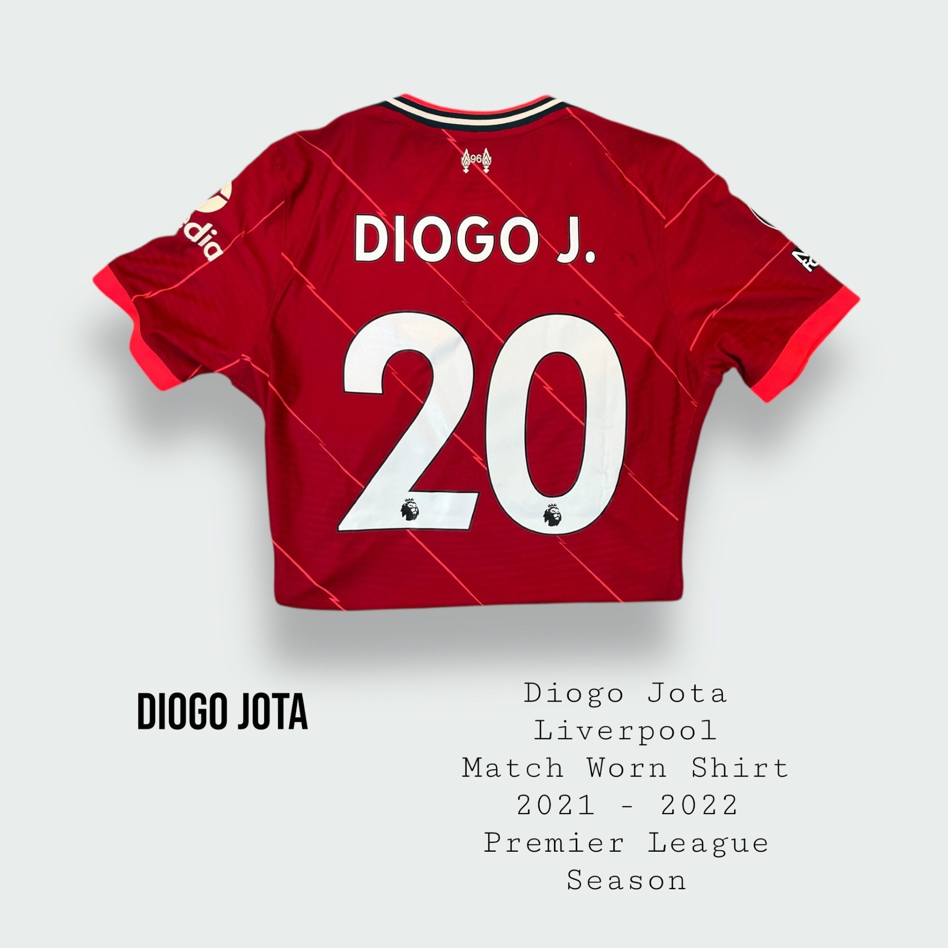 Diogo Jota Match Worn Liverpool Premier League Shirt 2021 – 2022 Season