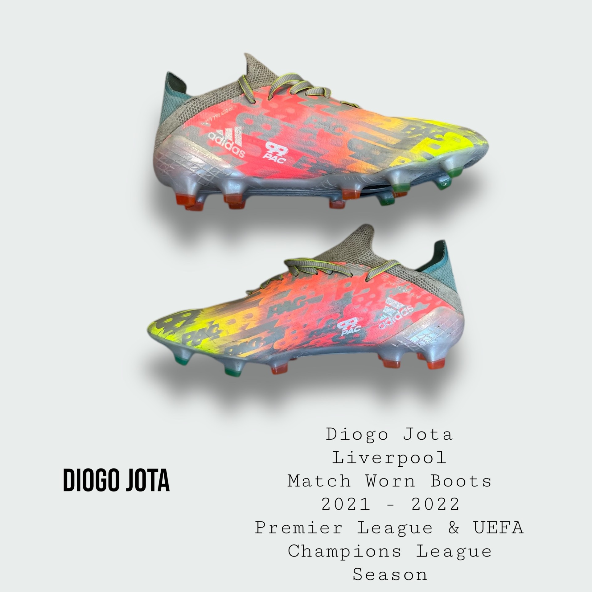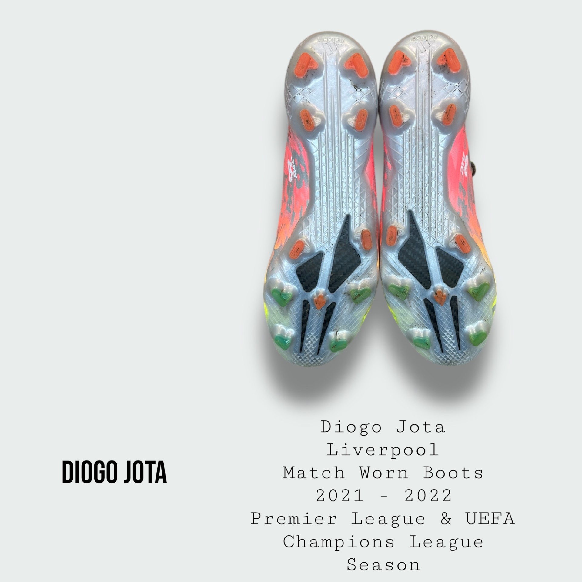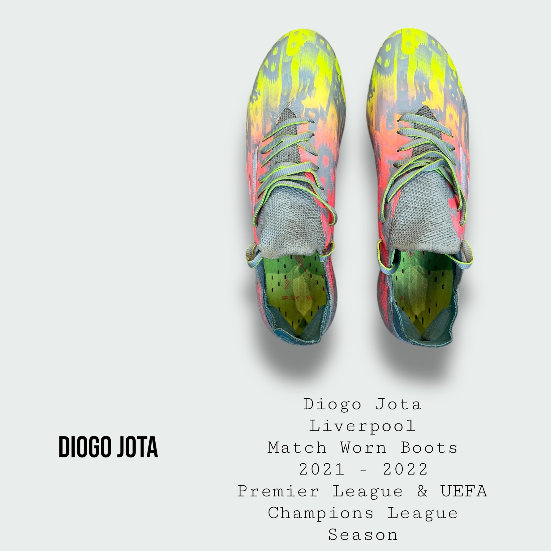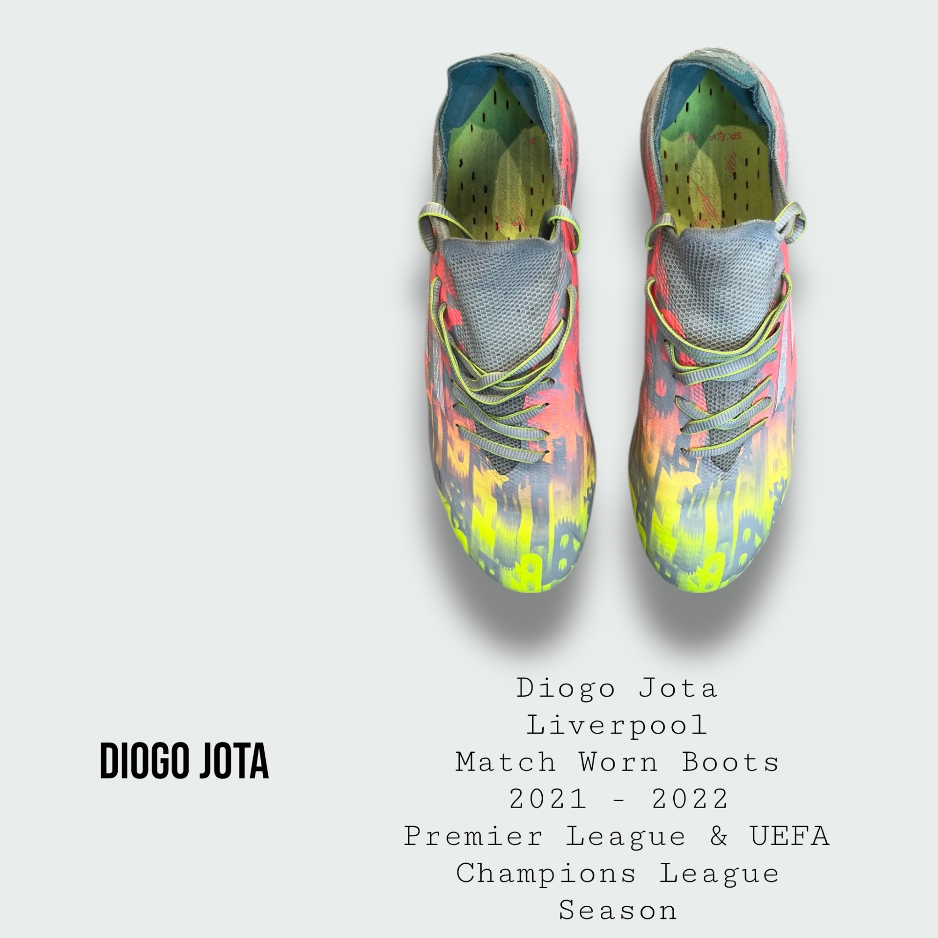 Boots worn by the late great Diogo Jota for Liverpool during the 2021 - 2022 Premier League & UEFA Champions League season
