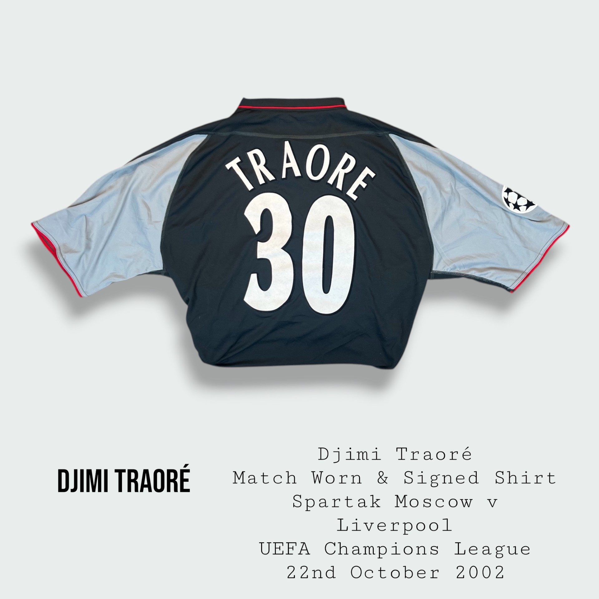 Shirt worn by Traoré for Liverpool during the UEFA Champions League fixture v Spartak Moscow at the Dinamo Stadium in Moscow on the 22nd October 2002
