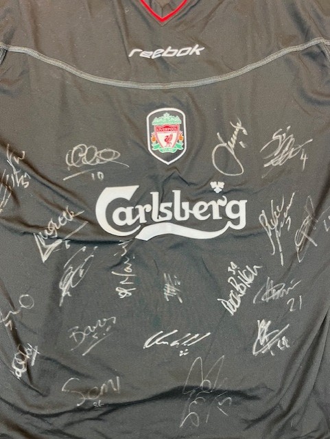 Shirt has been additionally hand signed by the full Liverpool team on the front including Traoré and Owen