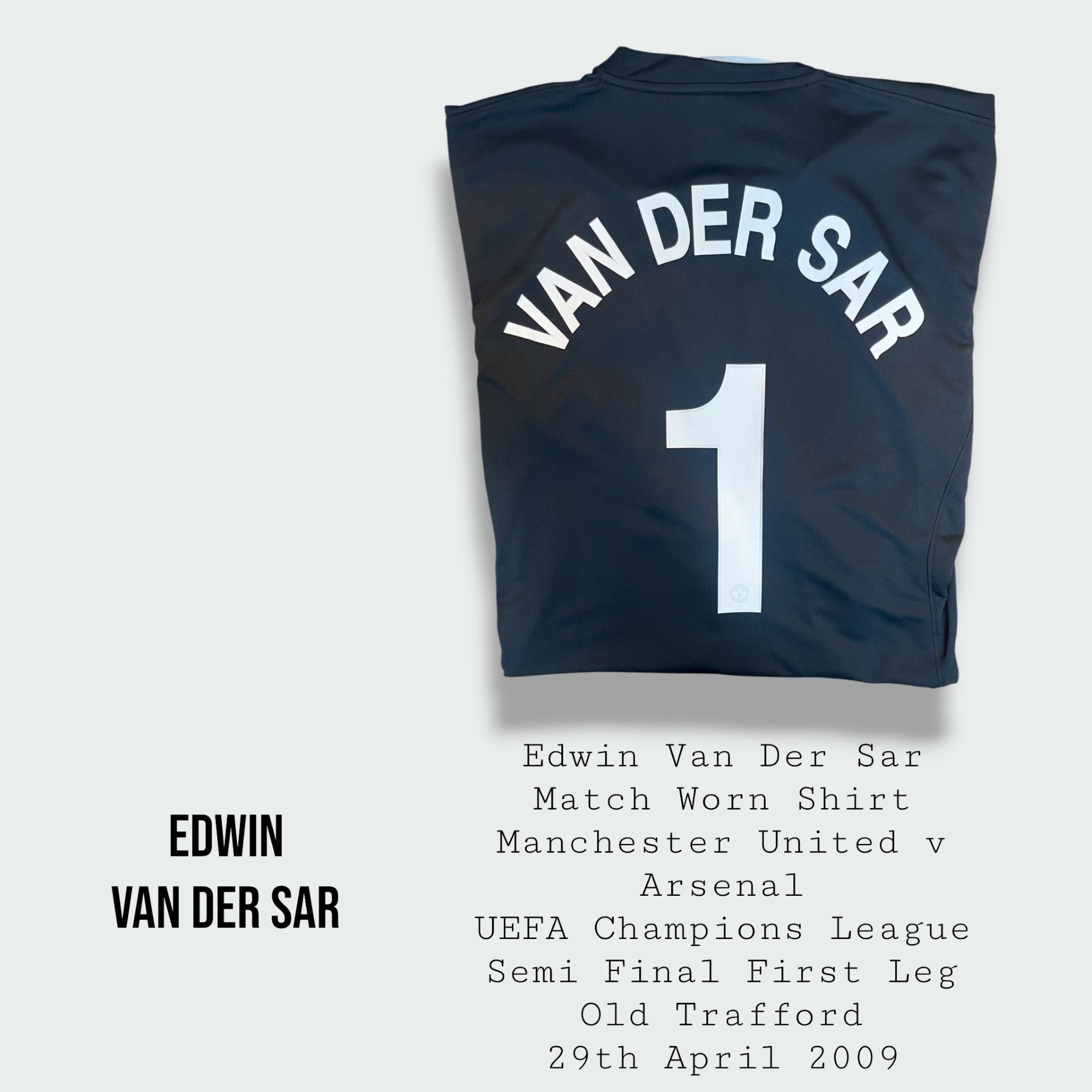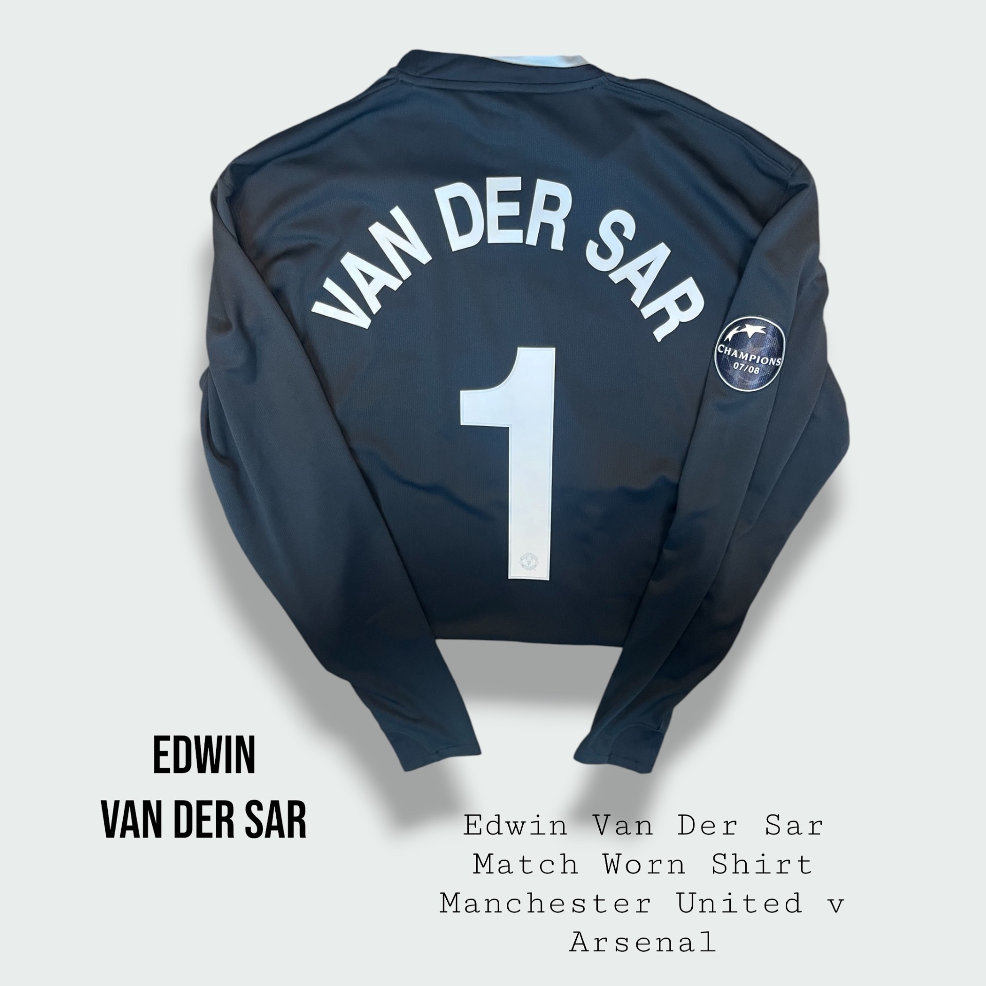 Edwin Van Der Sar Match Worn Manchester United UEFA Champions League Shirt 2008 – 2009 Season