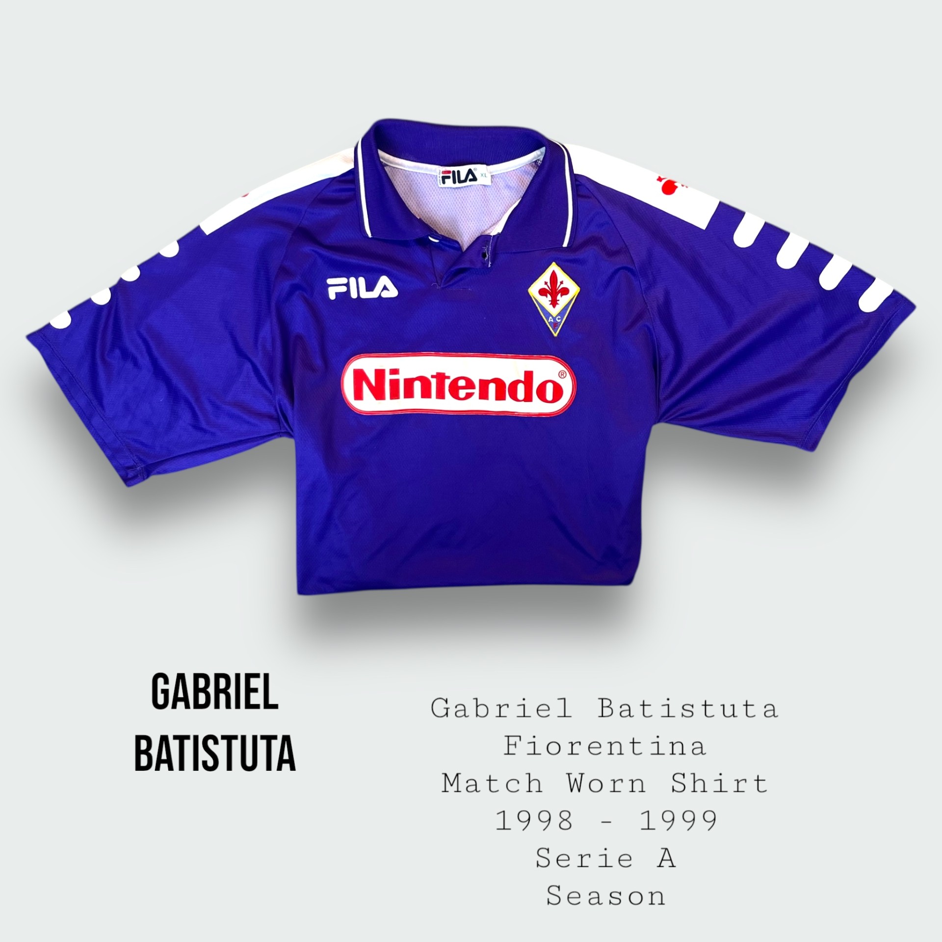 Gabriel Batistuta Match Worn Fiorentina Shirt 1998 – 1999 Season