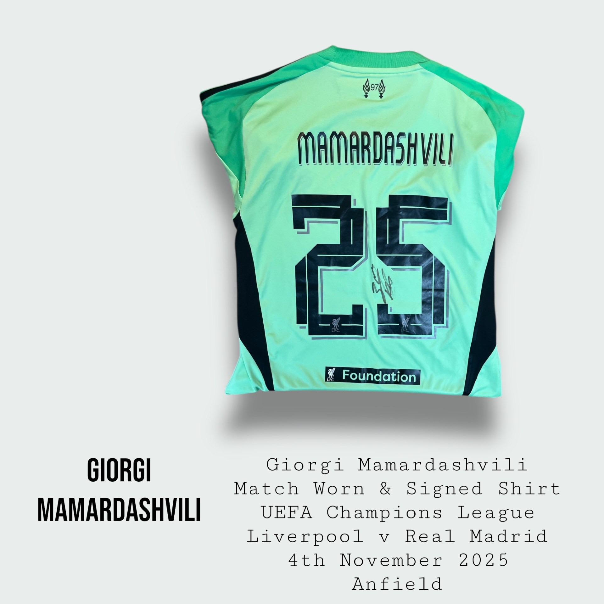 Shirt worn by Mamardashvili for Liverpool during the UEFA Champions League fixture v Real Madrid at Anfield on the 4th November 2025
