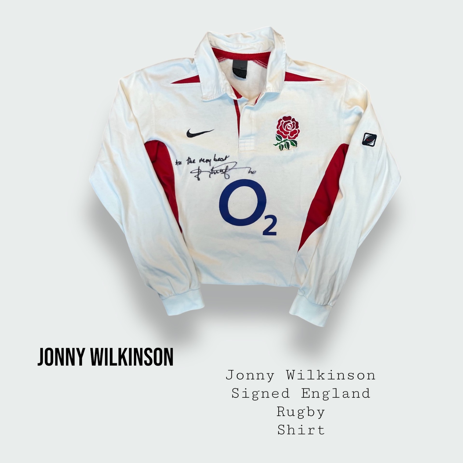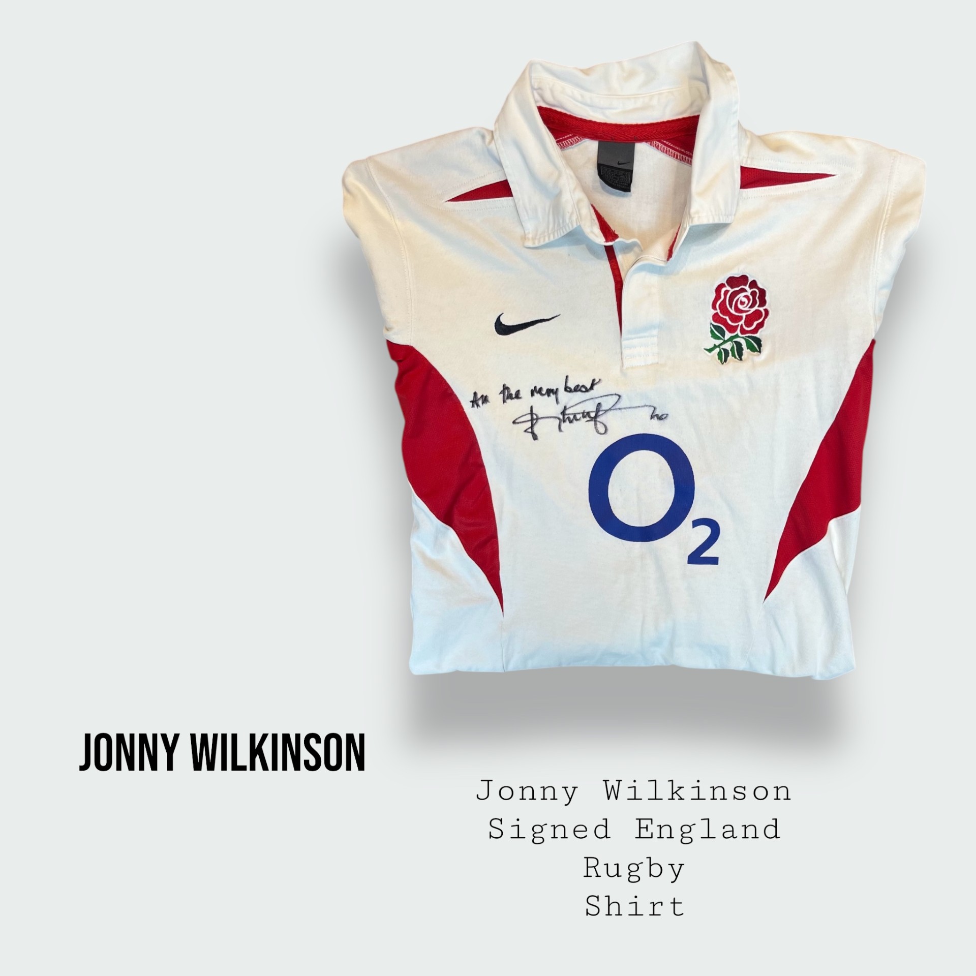 Shirt hand signed on the front by Jonny " All the very best - Jonny Wilkinson "
