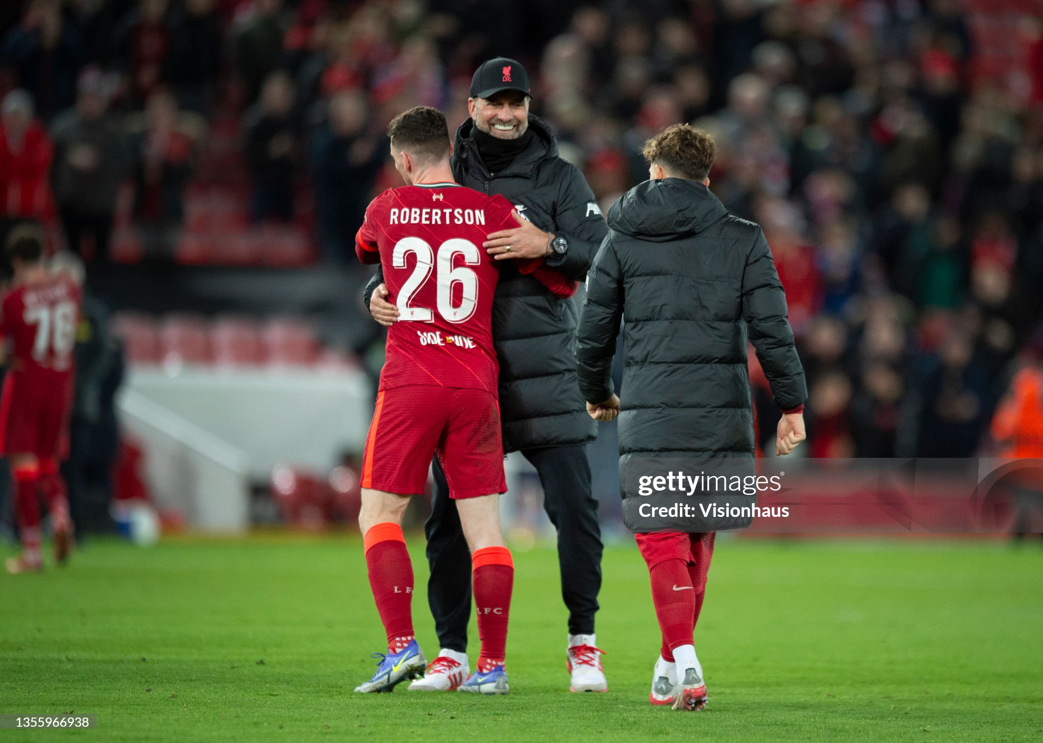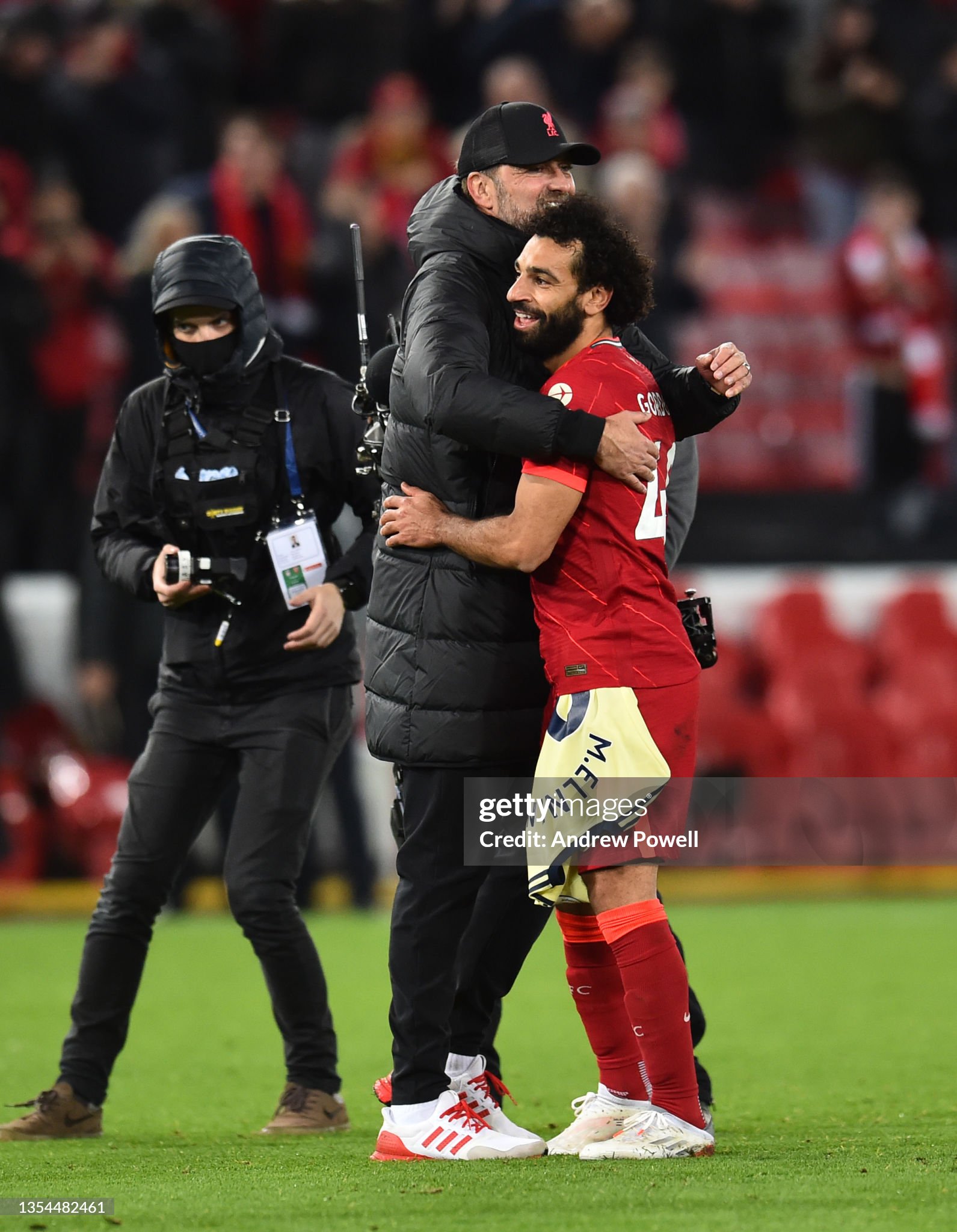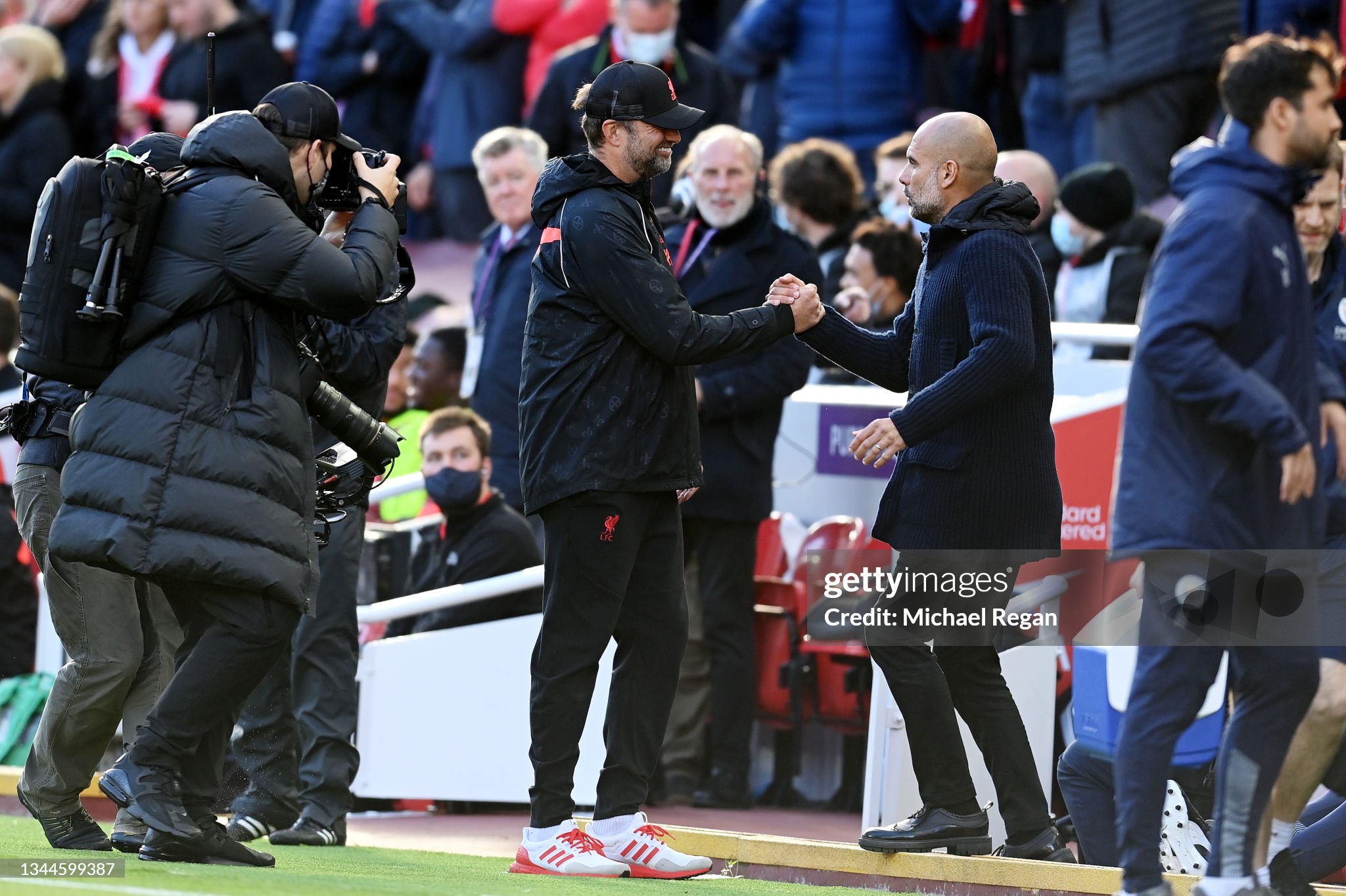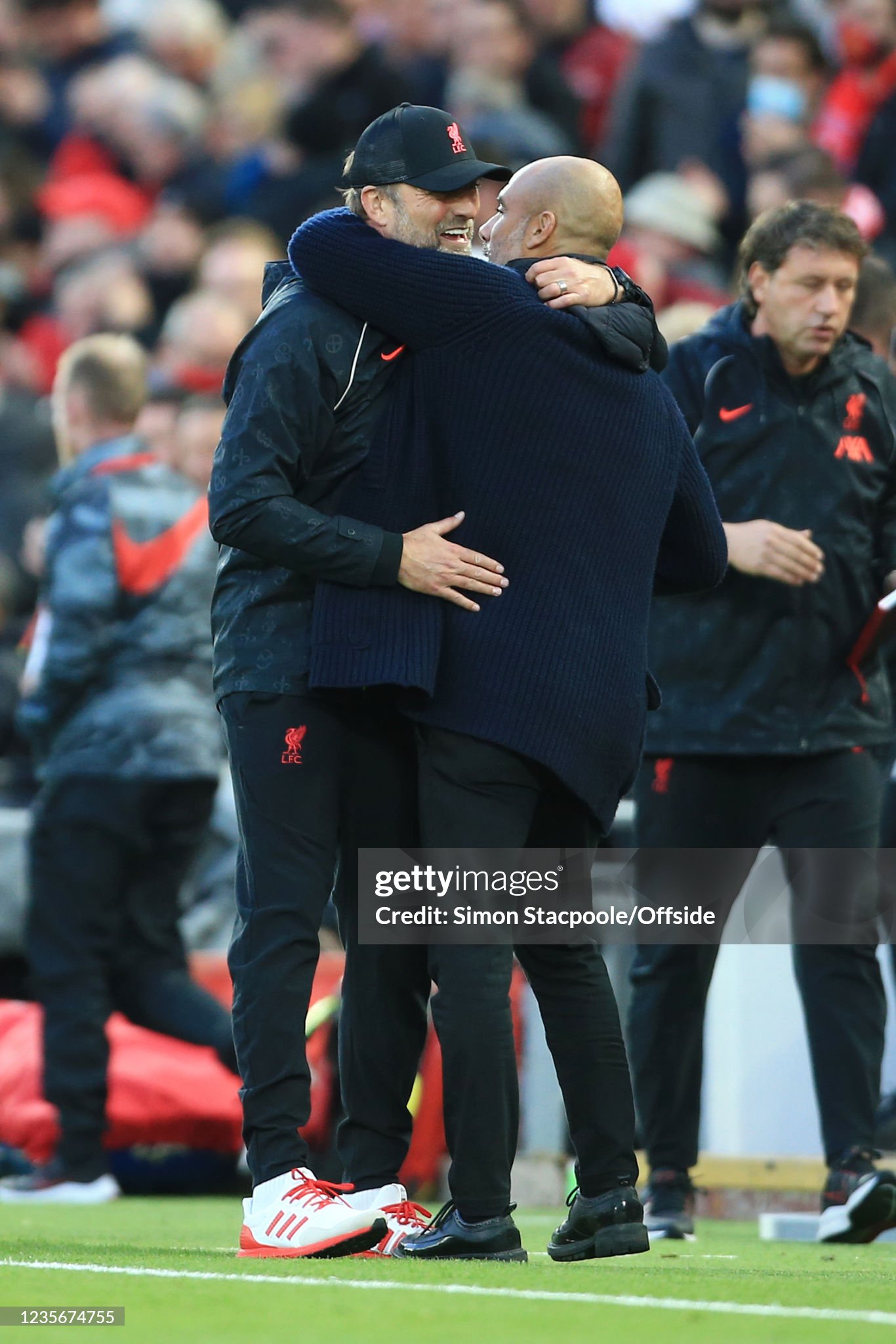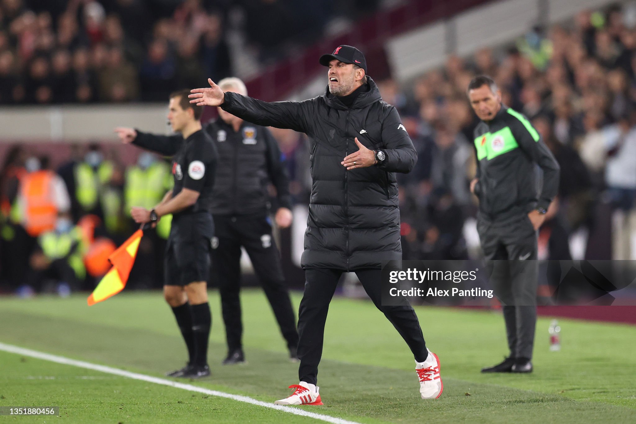 Trainers and cap worn whilst on the touchline for Liverpool during the 2021 - 2022 Premier League and Champions League season