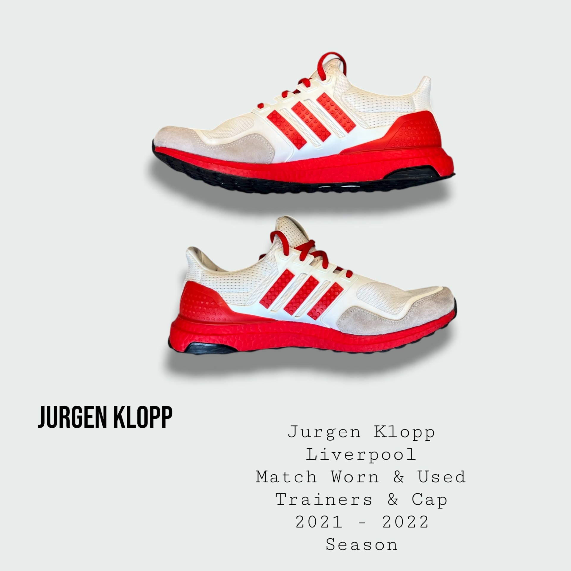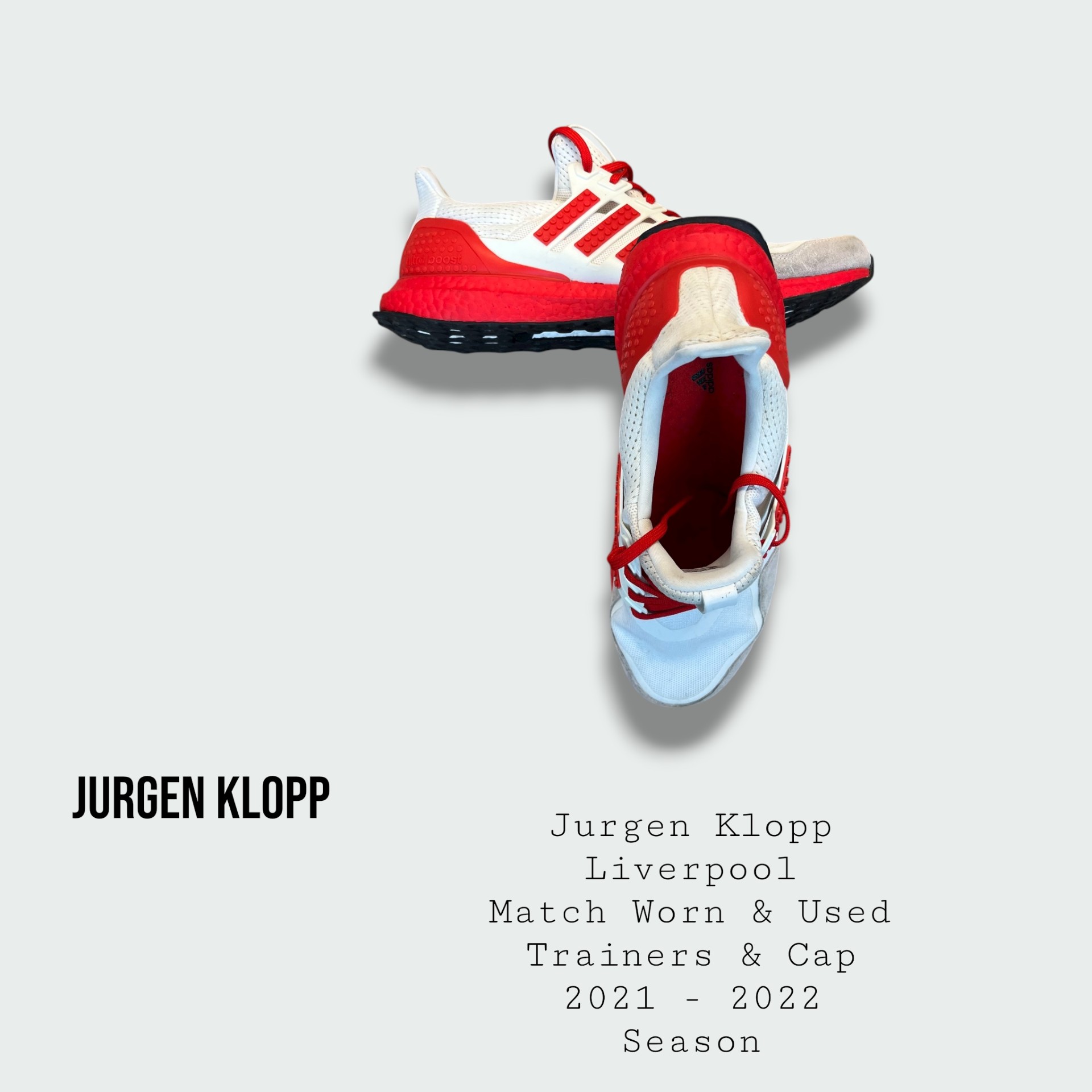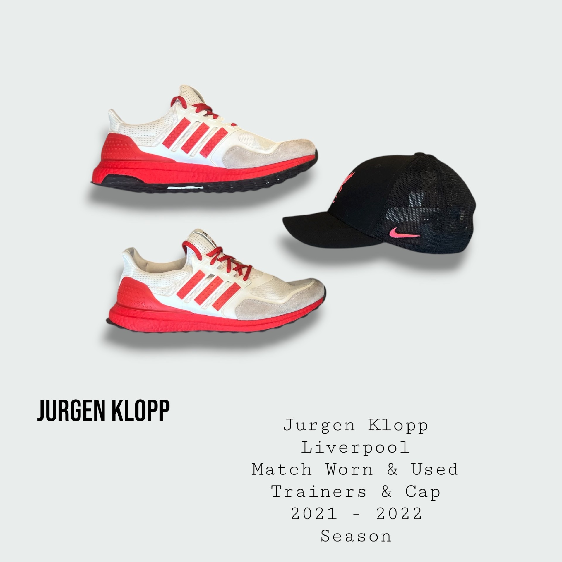 Jurgen Klopp Match Worn & Used Liverpool Trainers & Cap Set 2021 – 2022 Season