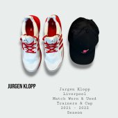 Trainers and cap worn and used by Klopp whilst manager of Liverpool during the 2021 - 2022 Premier League & Champions league season
