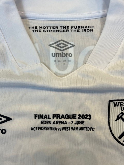 Amazing and beautiful worn shirt from the former West Ham United defender and from the clubs historic UEFA Europa Conference League Final victory