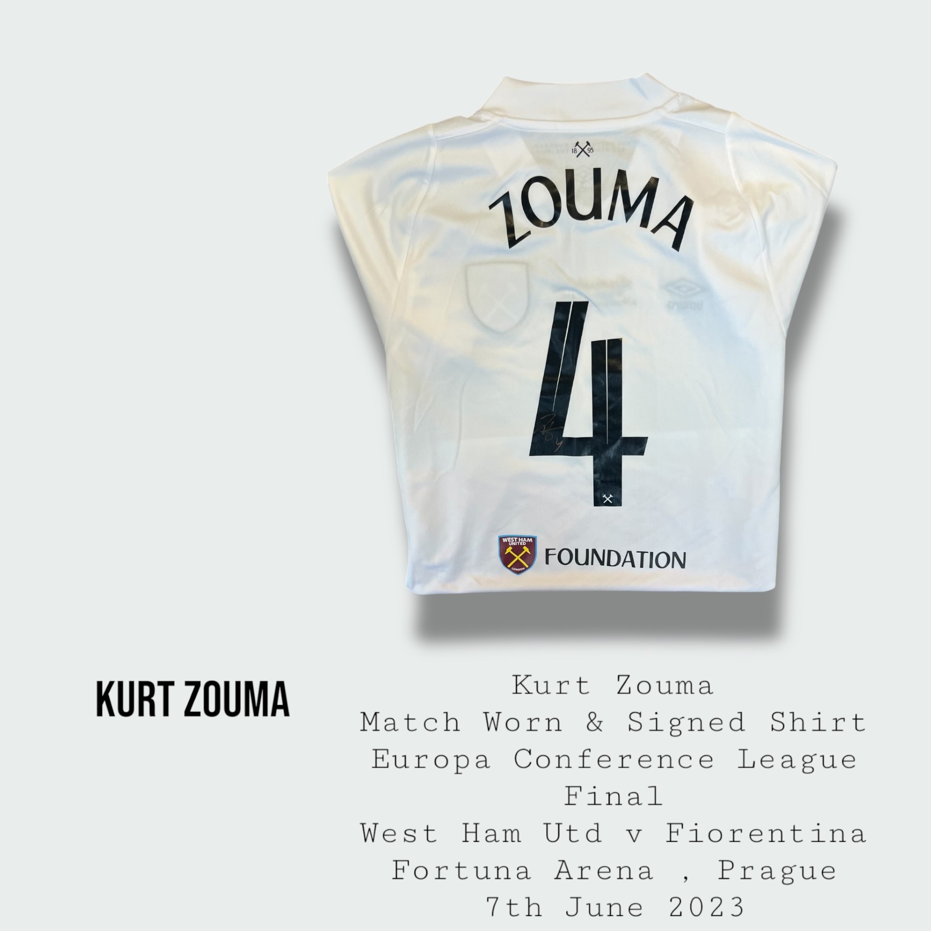 Incredibly rare and historic Kurt Zouma match worn West Ham United Europa Conference League final shirt