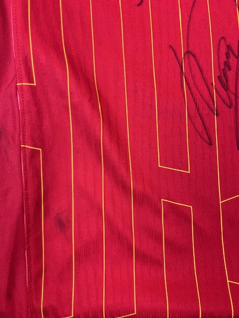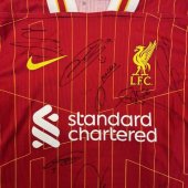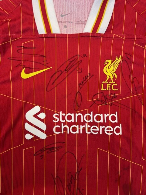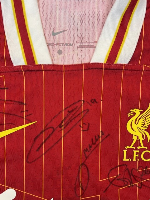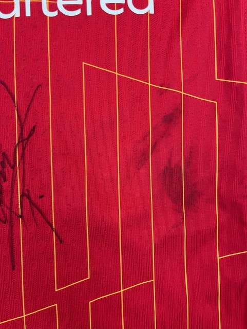 Shirt has been additionally hand signed by some of the Liverpool team on the front including Salah which can be seen in the attached pictures signings the shirt with Diaz's father
