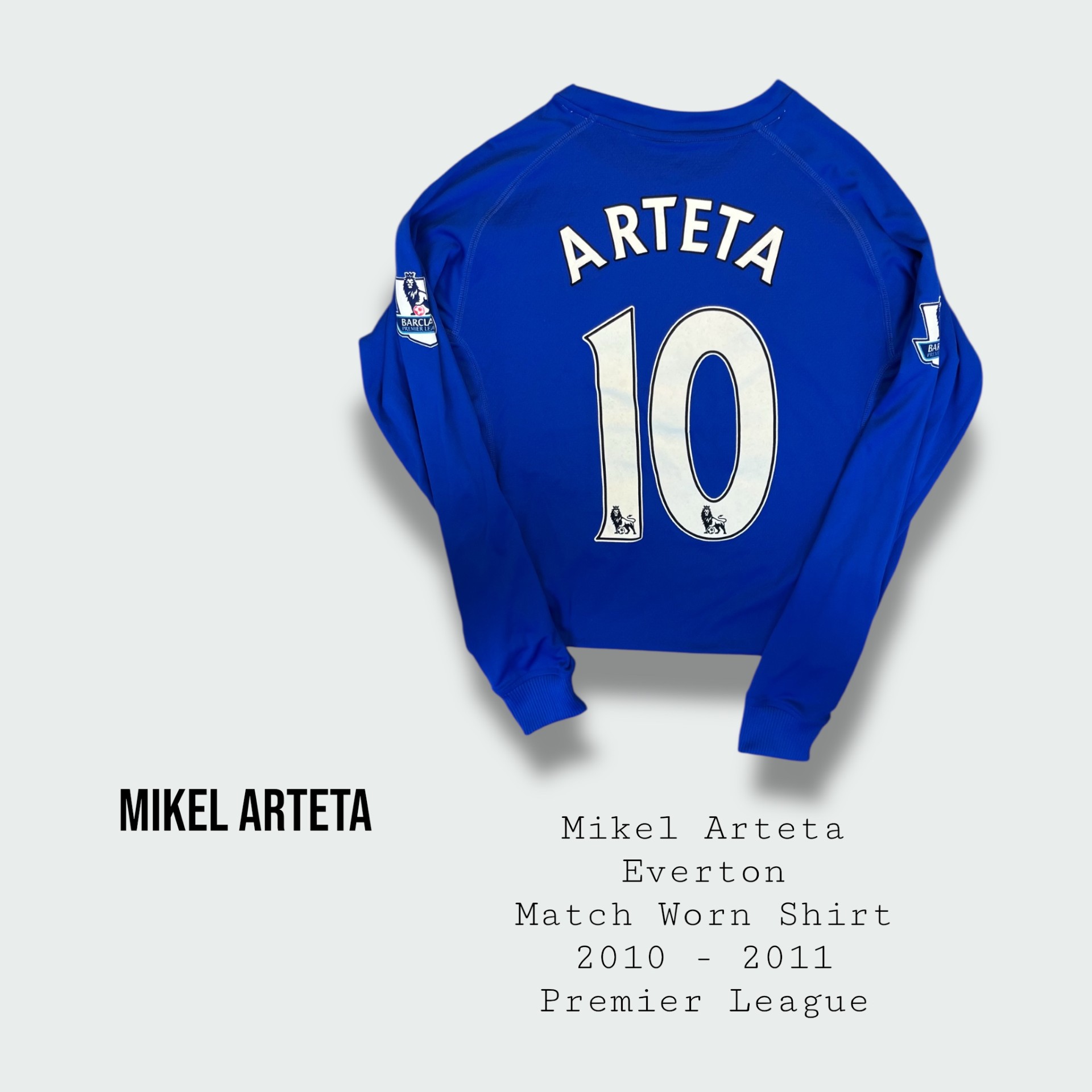 Shirt worn by Arteta whilst playing for Everton during the 2010 - 2011 Premier League season