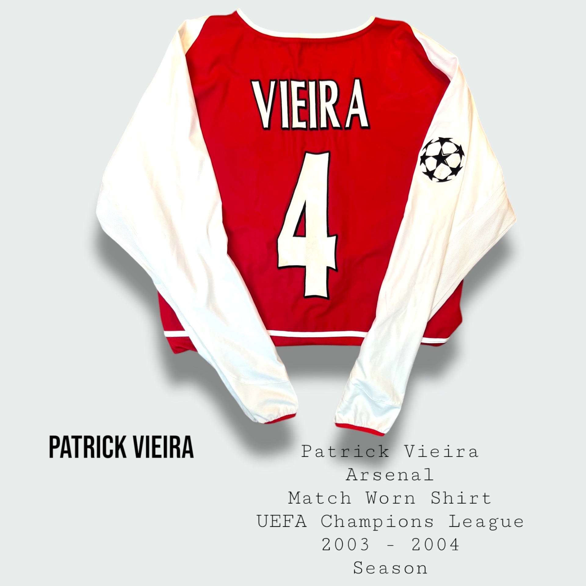 Patrick Vieira Match Worn Arsenal UEFA Champions League Shirt 2003 – 2004 Season