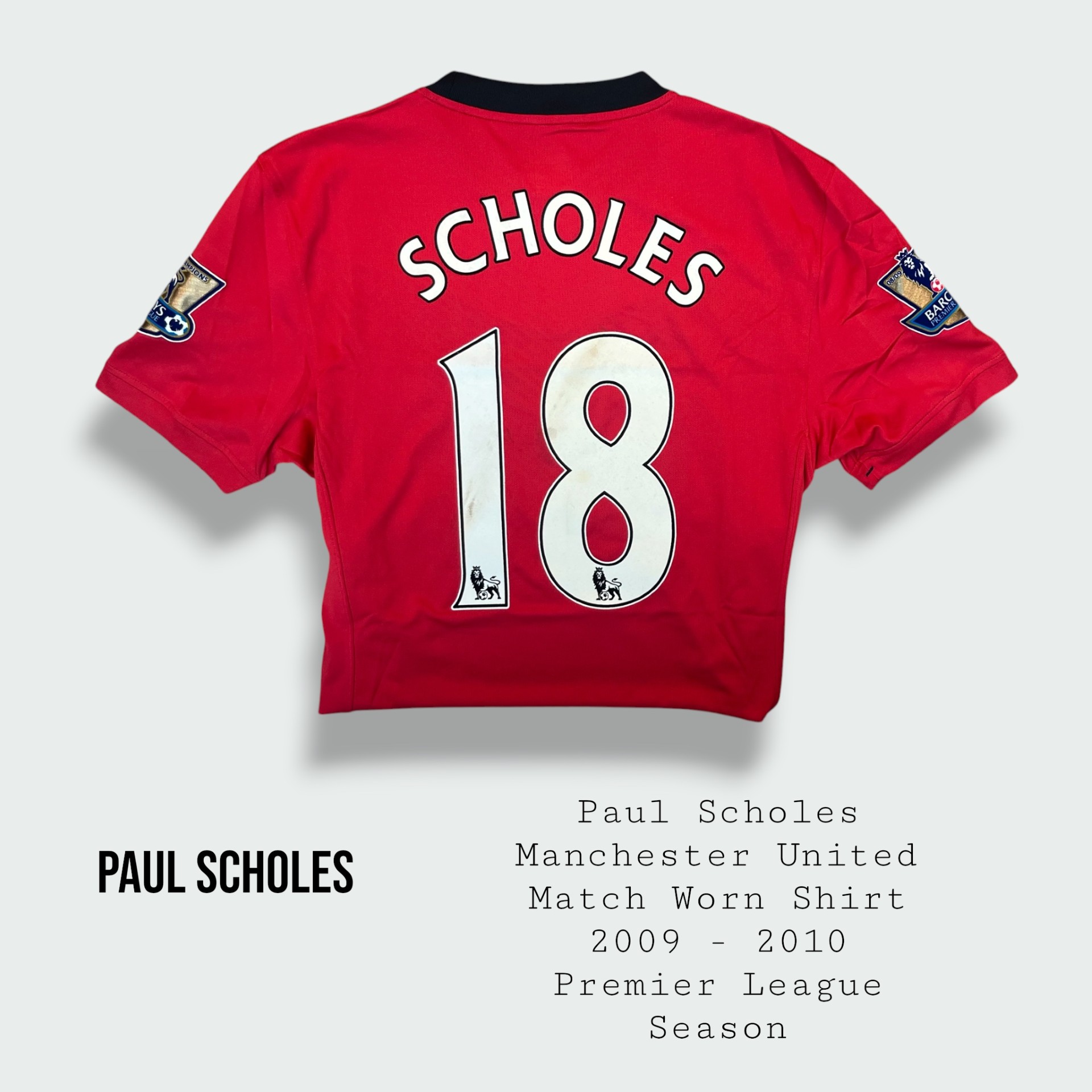 Incredibly rare and beautiful Paul Scholes match worn Manchester United shirt
