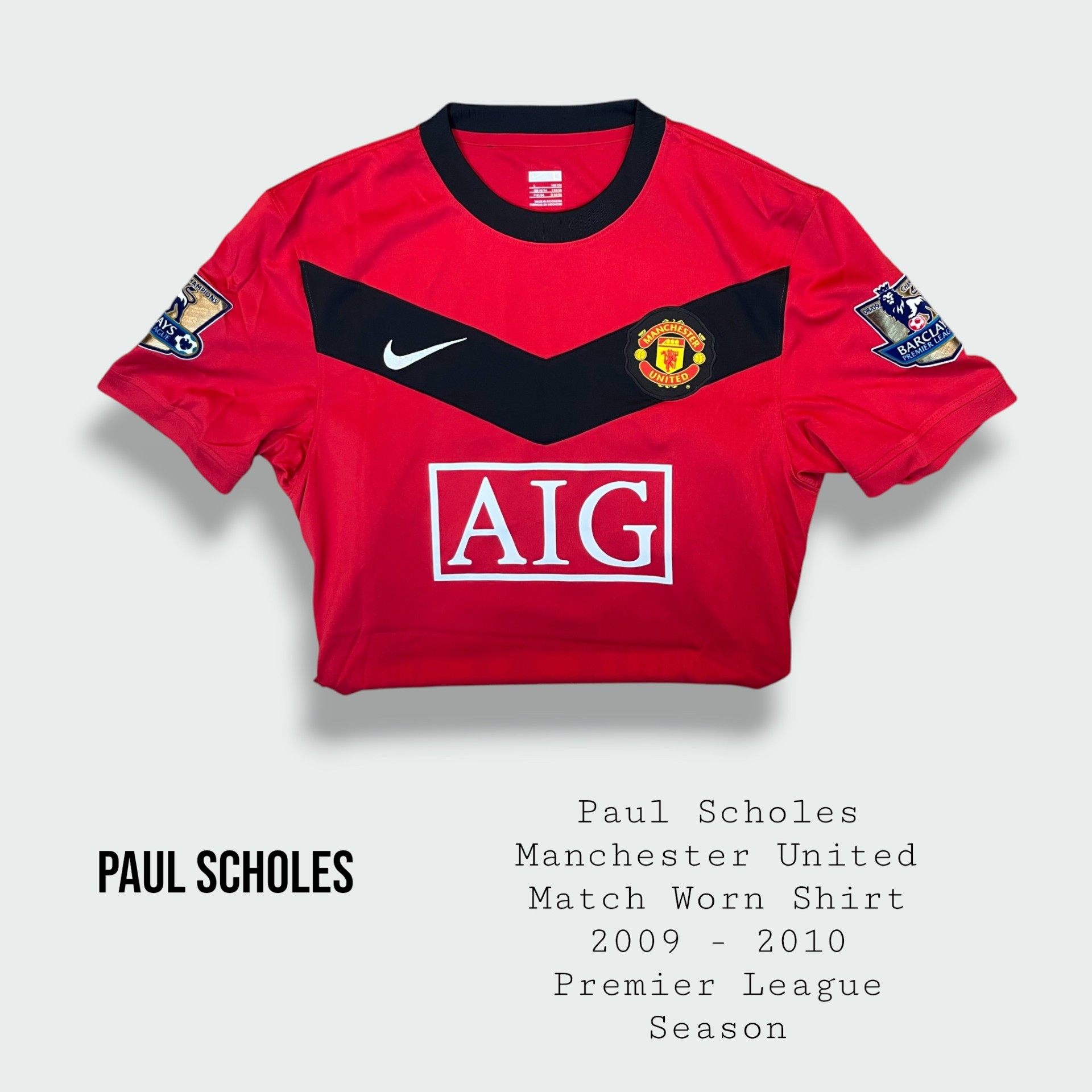 Paul Scholes Match Worn Manchester United Shirt 2009 – 2010 Season