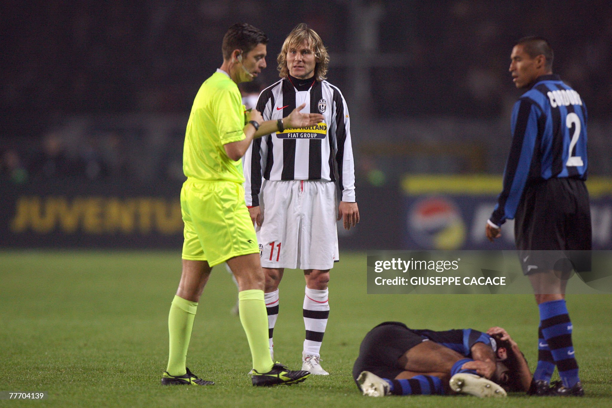 For the 2007–08 season, Juventus again played in Serie A. Nedvěd played frequently for the Bianconeri, contributing as the team's first-choice left winger and scoring two goals that season. He was again controversial: in November 2007, his tackle of Inter Milan midfielder Luís Figo broke Figo's fibula. In April 2008, Nedvěd was hospitalised overnight for a concussion sustained in a collision with Roberto Guana during a match against Palermo.